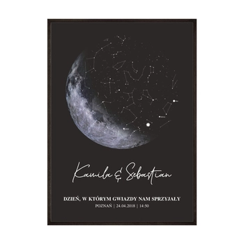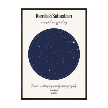 Mapa gwiazd w formie plakatu to połączenie sztuki i wspomnień, to podróż w czasie i przestrzeni poprzez odwzorowanie mapy gwiazd w konkretnym dniu, miejscu i godzinie. Mogą przywołać wspomnienia najpiękniejszych chwil: od romantycznych randek po wyjątkowe wydarzenia życiowe. Personalizowana mapa gwiazd w formie plakatu sprawi, że zobaczysz układ gwiazd dokładnie tak, jak wyglądały w wybranym przez Ciebie miejscu, w określonym dniu i godzinie.