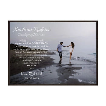 W naszych plakatach dla rodziców stawiamy przede wszystkim na personalizację. To Wasze zdjęcia, Wasze imiona i Wasza data ślubu zostaną umieszczone na plakacie. Taka kombinacja sprawi, że będzie to bardzo osobista i indywidualna pamiątka na lata łącząca w sobie emocje i estetykę. Dla nas najważniejsze jest Wasze zadowolenie, dlatego w niektórych przypadkach na życzenie możemy również lekko zmodyfikować treść podziękowań, tak aby były jeszcze bardziej osobiste.