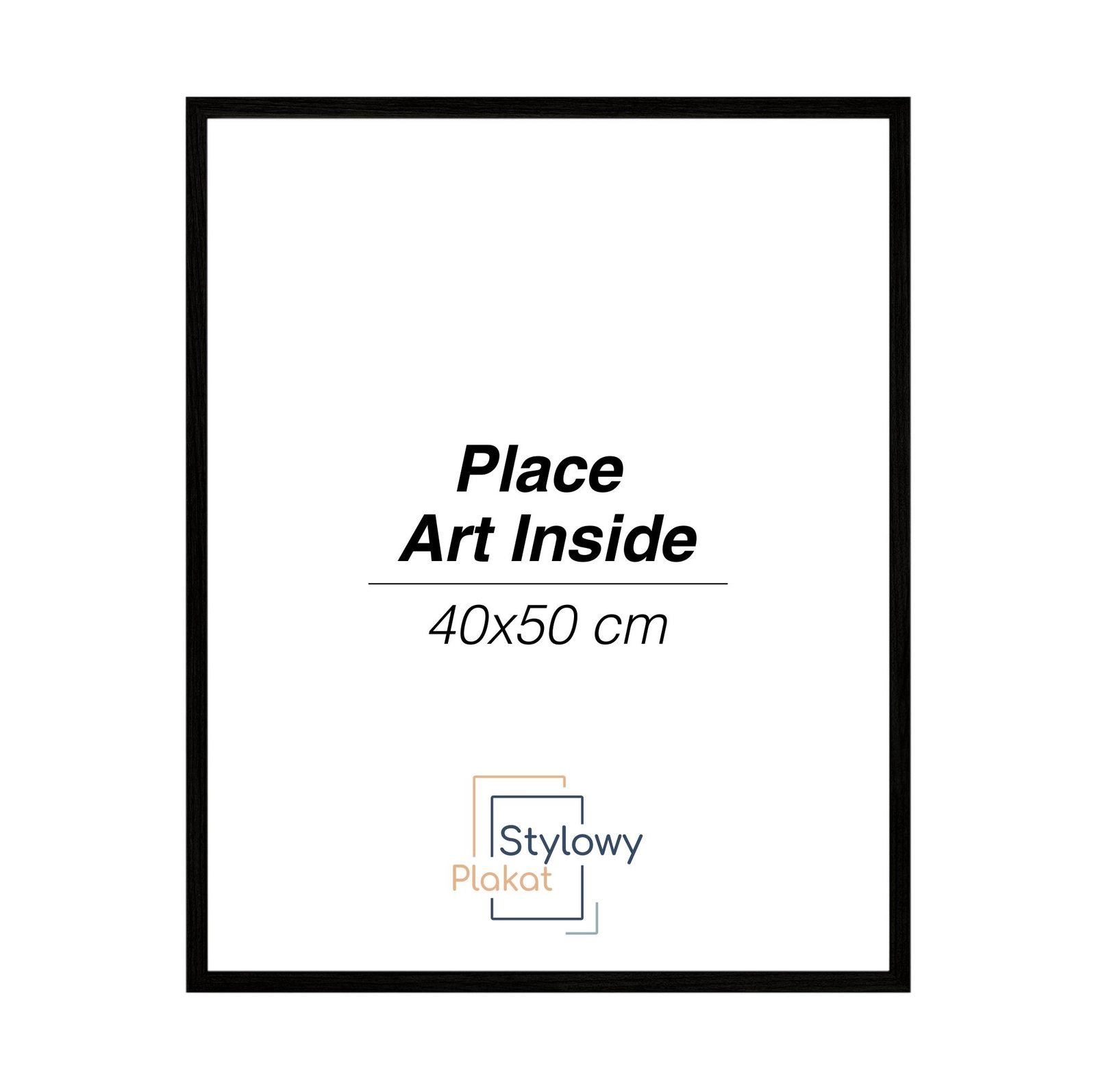 - Stylowa, drewniana ramka w czarnym kolorze. Idealna na plakaty w formacie 40x50 cm. Modna stylistyka i delikatna rama o szerokości 13mm i wysokości 20mm przykuje uwagę i pięknie zaakcentuje oprawioną grafikę.
