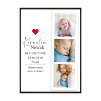 - imię dziecka oraz wszystkie dane (data urodzin / waga / wzrost / godzina).