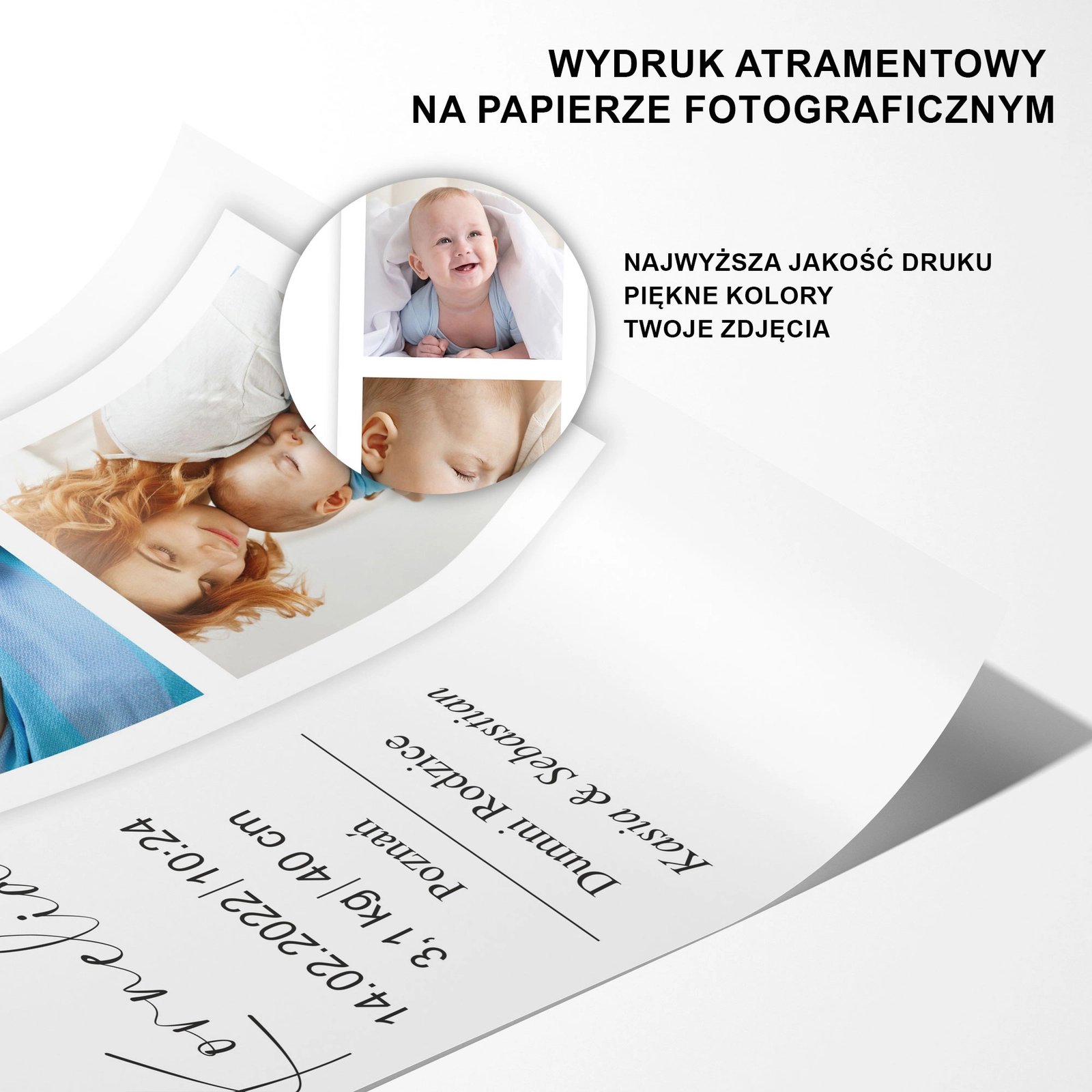 - Metryczka urodzinowa to przepiękny prezent z okazji urodzin dziecka. Taka dekoracja pozwoli zachować w pamięci wszystkie informacje z tego wyjątkowego dnia. Nowoczesny styl i miejsce na 3 Wasze zdjęcia doda jej bardzo osobistego charakteru.