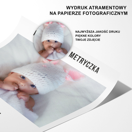 - Metryczka urodzinowa ze zdjęciem to przepiękny prezent z okazji urodzin dziecka. Jest to jeden z najważniejszych dni w życiu, więc taka dekoracja zachowa w pamięci wszystkie informacje z tego wyjątkowego dnia.