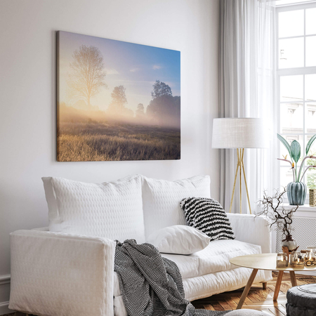 • Obraz letnia łąka to obraz, na którym ukazana została niesamowita gra świateł. Wschodzące słońce przepięknie oświetla drzewa i trawę. Niezależnie od tego gdzie zostanie powieszony wprowadzi pozytywną energię oraz radosne i wiosenne kolory.