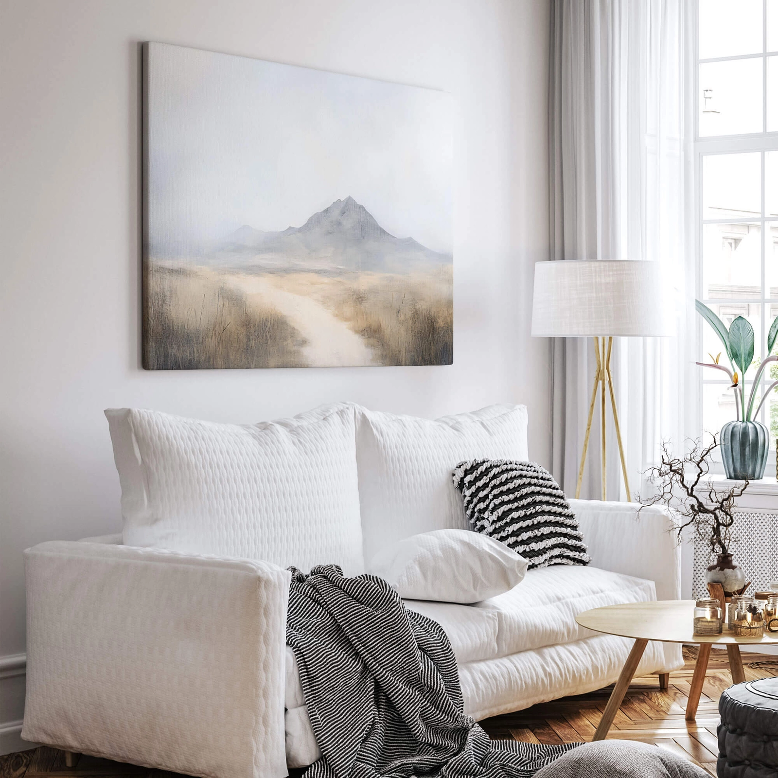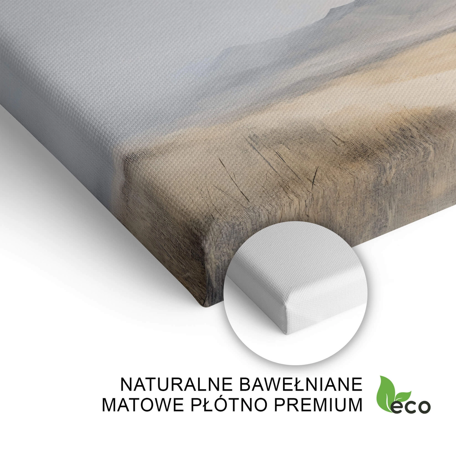 - Obraz na płótnie Górska Harmonia to połączenie stonowanych barw z mglistym pejzażem górskim. Całość tworzy iście malarską kompozycję. Taki obraz to gwarancja spokojnej atmosfery i bliskości natury. Idealny do salonu, sypialni czy biura.