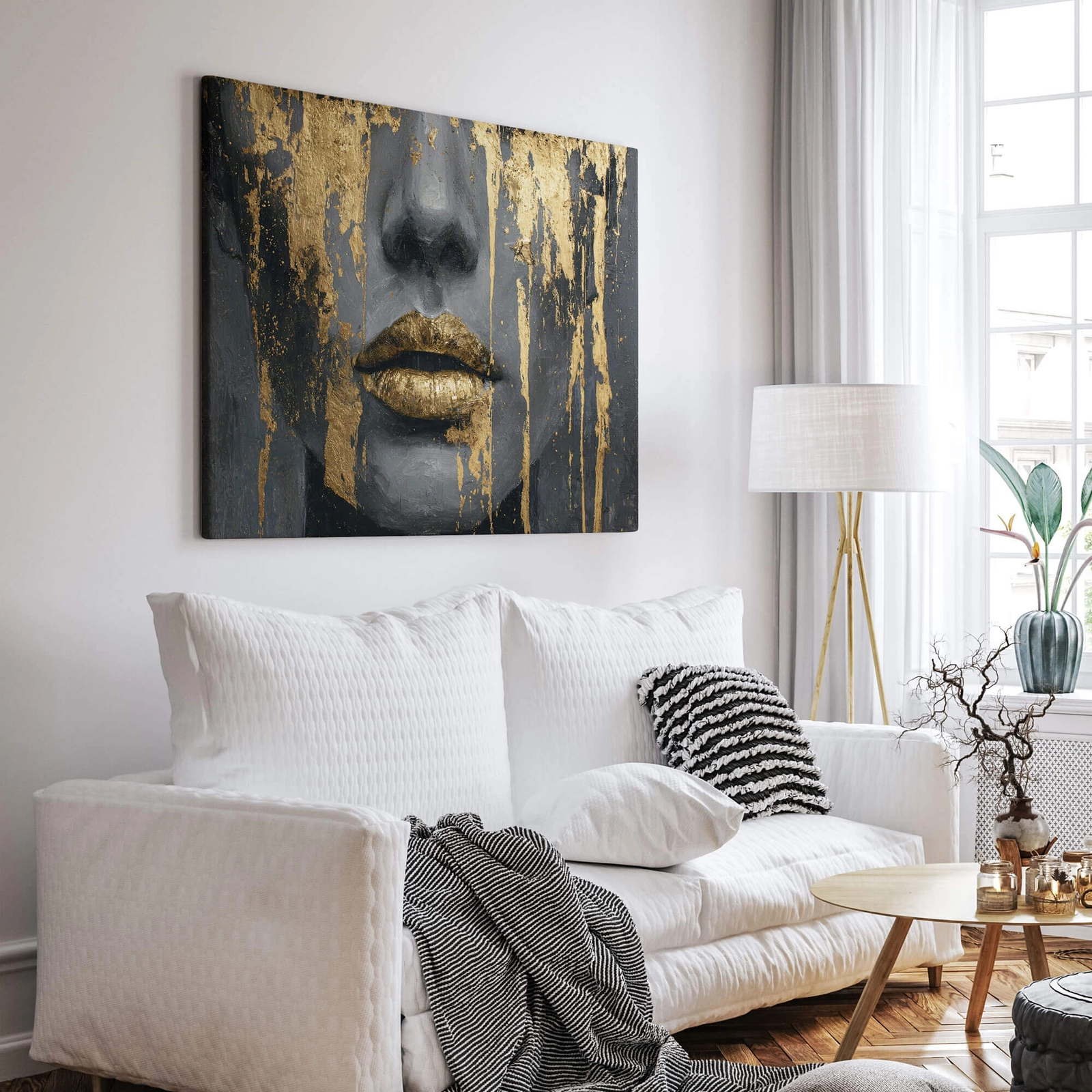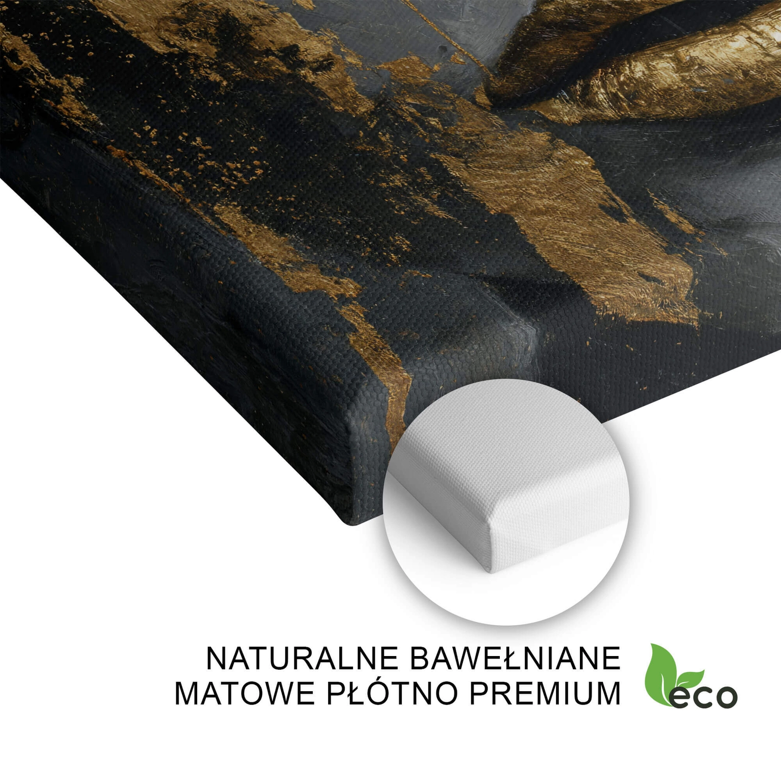 - Obraz na płótnie „Złoto w Ciemności” to wyrazista dekoracja łącząca głęboką czerń z intensywnym złotem. Surowa faktura i tajemniczy motyw twarzy tworzą luksusowy, nowoczesny akcent idealny do wnętrz glamour, loft i przestrzeni premium.