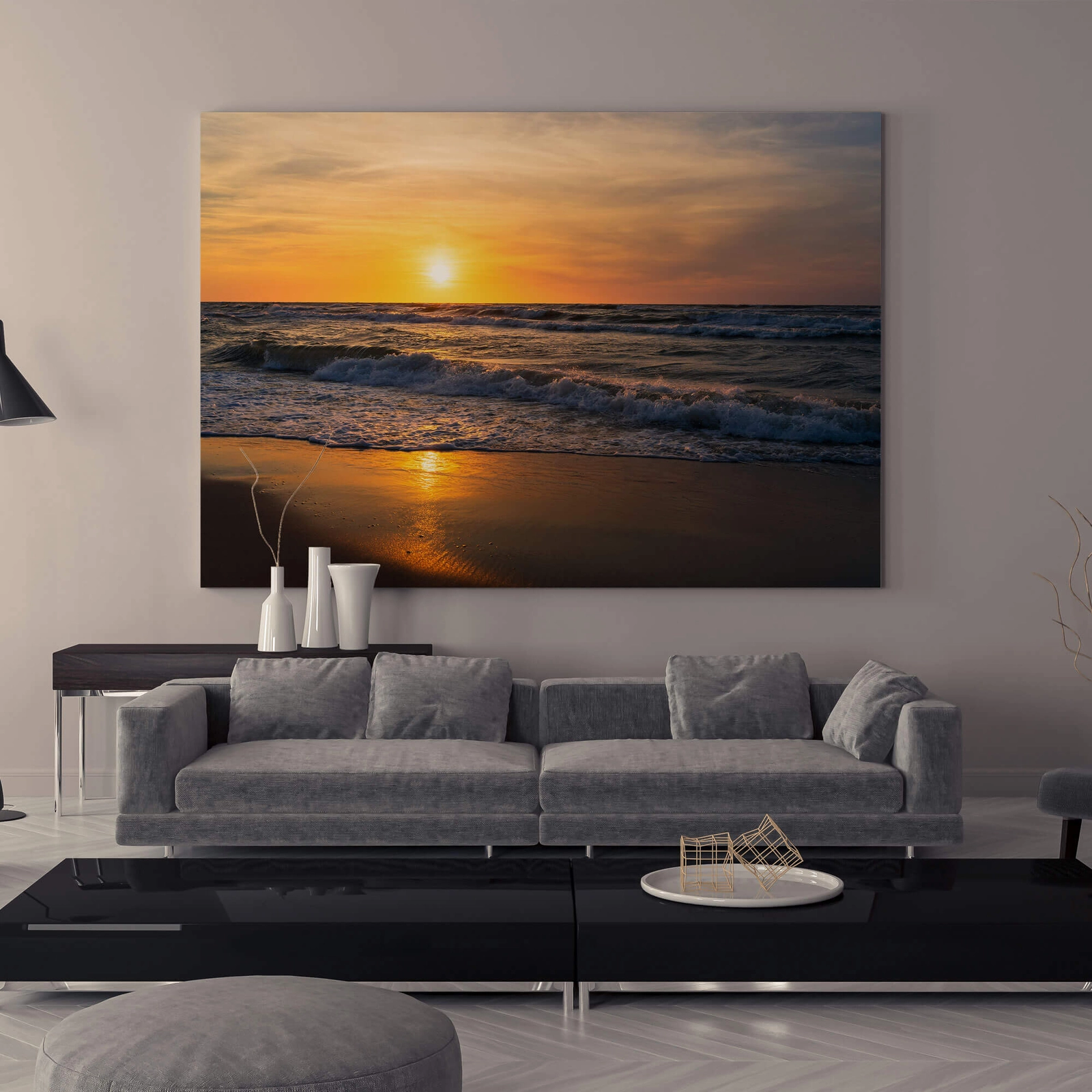 - Przepiękny, kolorowy zachód słońca uchwycony nad wzburzonym morzem Bałtyckim. Morze to cudowny temat obrazów, a sposób w jaki na tym zdjęciu zostało uchwycone pozwoli Tobie cieszyć się bajecznym widokiem przez cały rok.