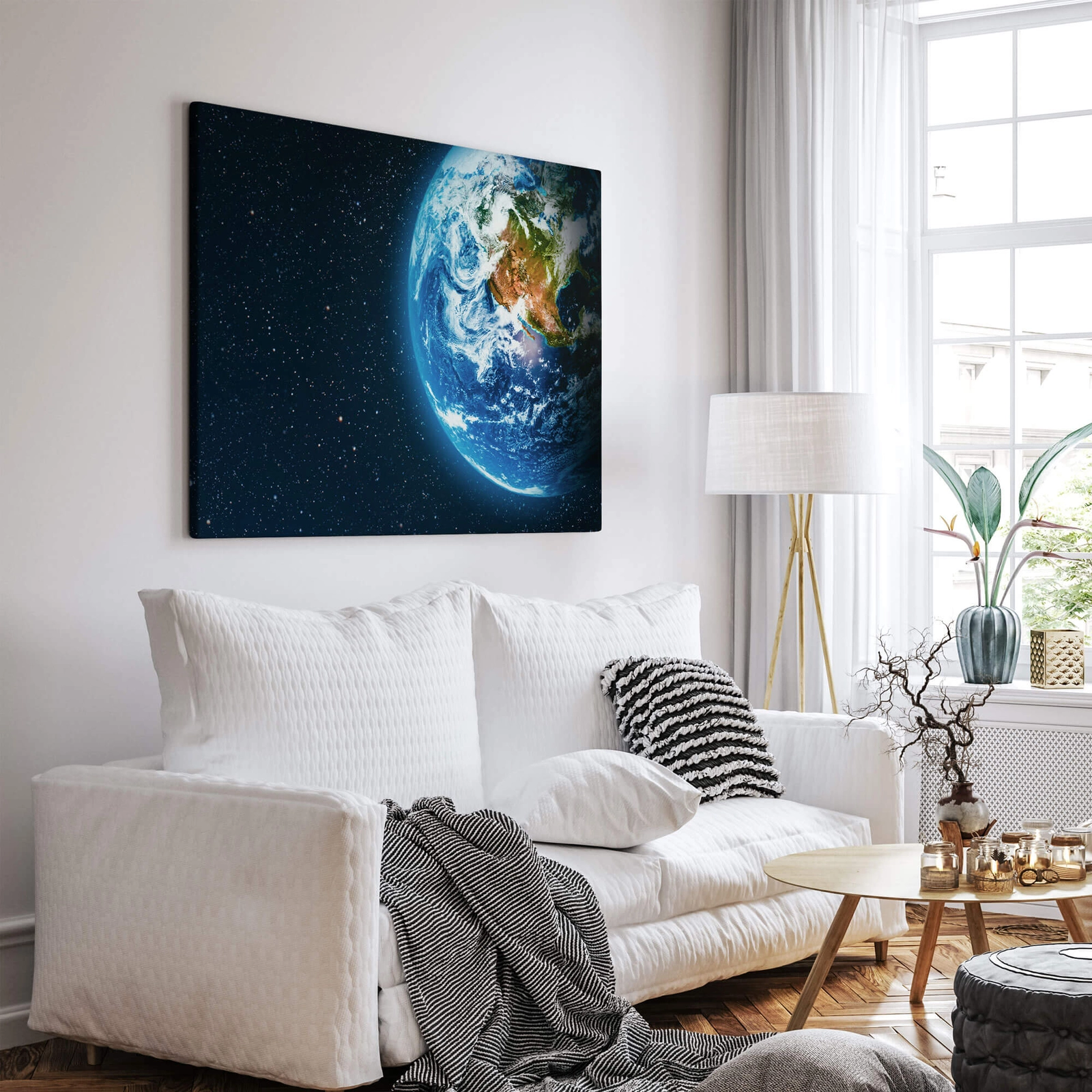 - Obraz Ziemia to nowoczesna dekoracja dla wszystkich miłośników kosmosu i astrofotografii. Obraz prezentuje się bardzo efektownie, dzięki czemu bez problemu wpasuje się do nowoczesnych wnętrz.