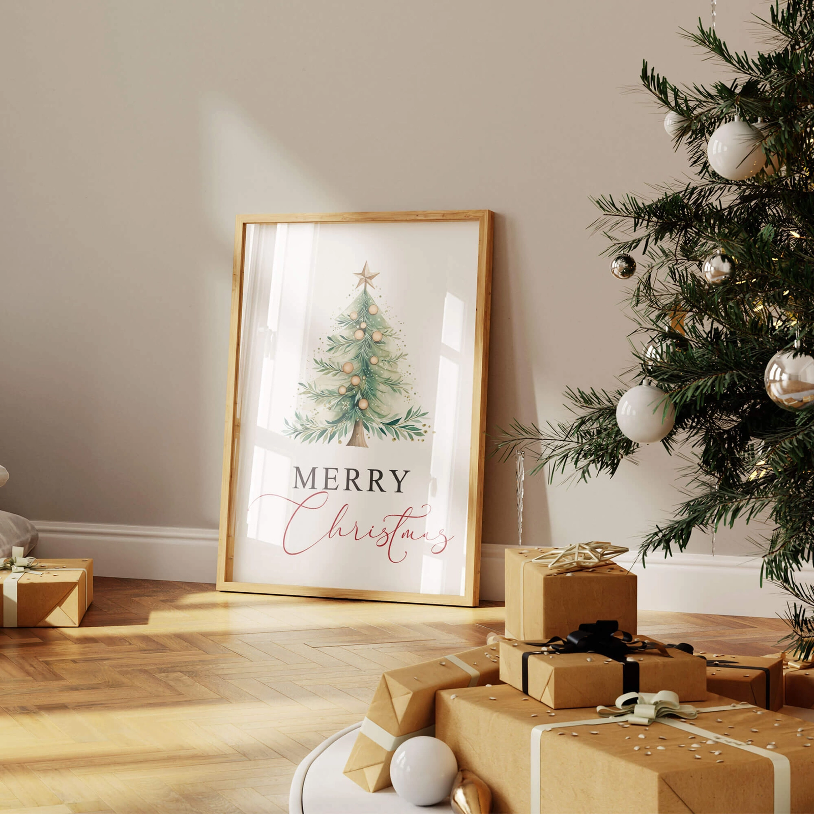 - Piękny plakat świąteczny, który rozpromieni każde wnętrze uroczą choinką i serdecznym napisem "Merry Christmas". To nie tylko dekoracja świąteczna, ale także wyraz artystycznego piękna, który wprowadzi do Twojego domu magię Bożego Narodzenia.