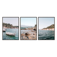 - Plakat geometric shapes to plakat graficzny, na którym znalazły się geometryczne łuki oraz część okręgu. Kolorystyka łączy się z nowoczesnym wzornictwem, natomiast sam plakat z pewnością podkreśli charakter każdego nowoczesnego wnętrza.