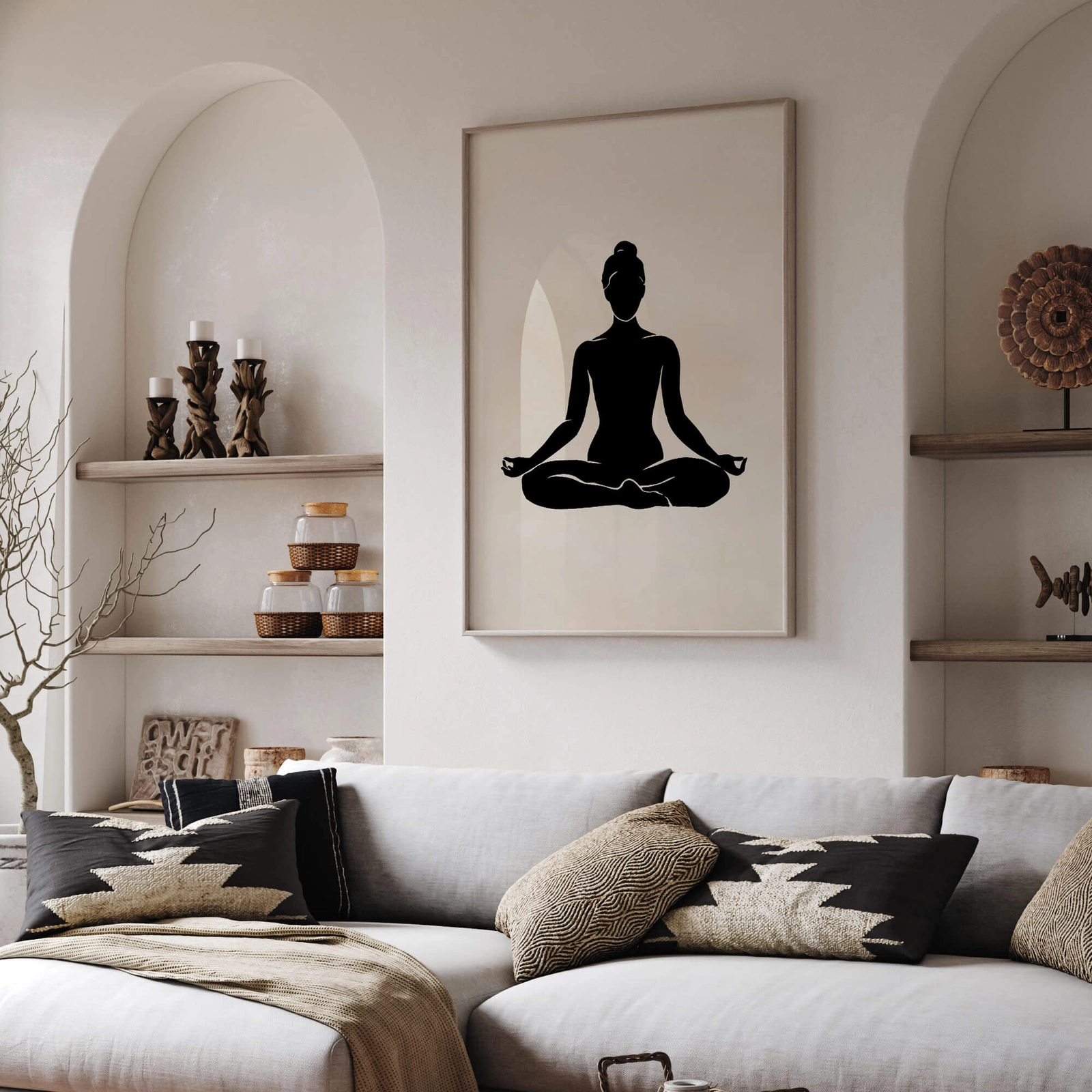 - Plakat Joga i Medytacja to minimalistyczna dekoracja, która wprowadza do wnętrza spokój, harmonię i równowagę. Czysta forma i subtelne barwy sprawiają, że doskonale komponuje się z przestrzeniami urządzonymi w stylu boho, scandi lub zen.