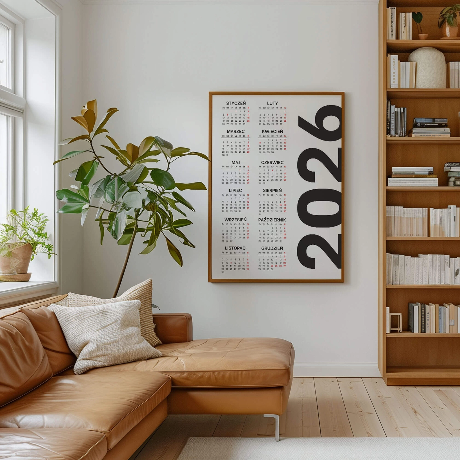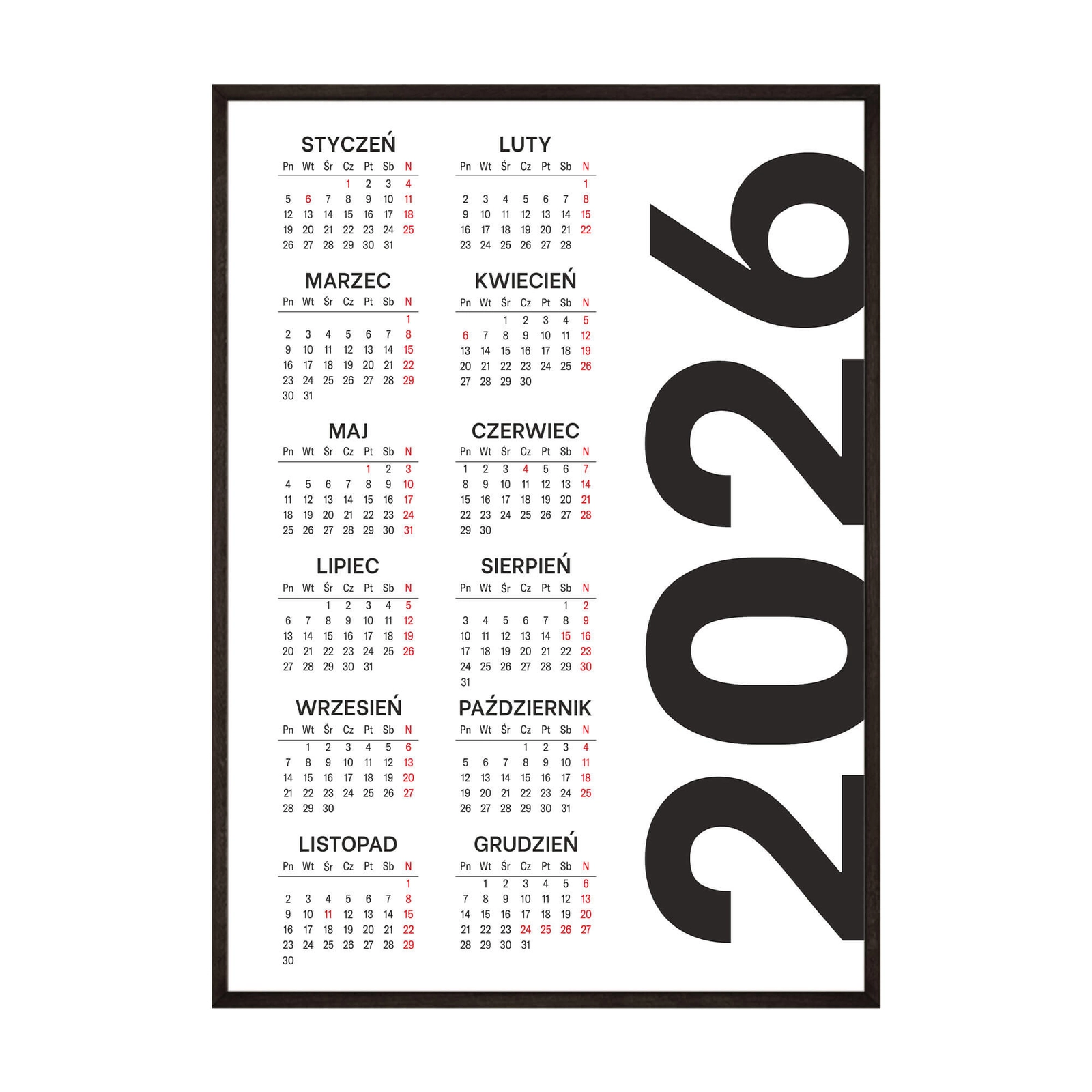 - Plakat Kalendarz 2026 to połączenie funkcjonalności i nowoczesnego designu. Minimalistyczny układ w czarno-białej kolorystyce sprawia, że doskonale komponuje się z każdym wnętrzem – od biura po domowe biuro czy salon.