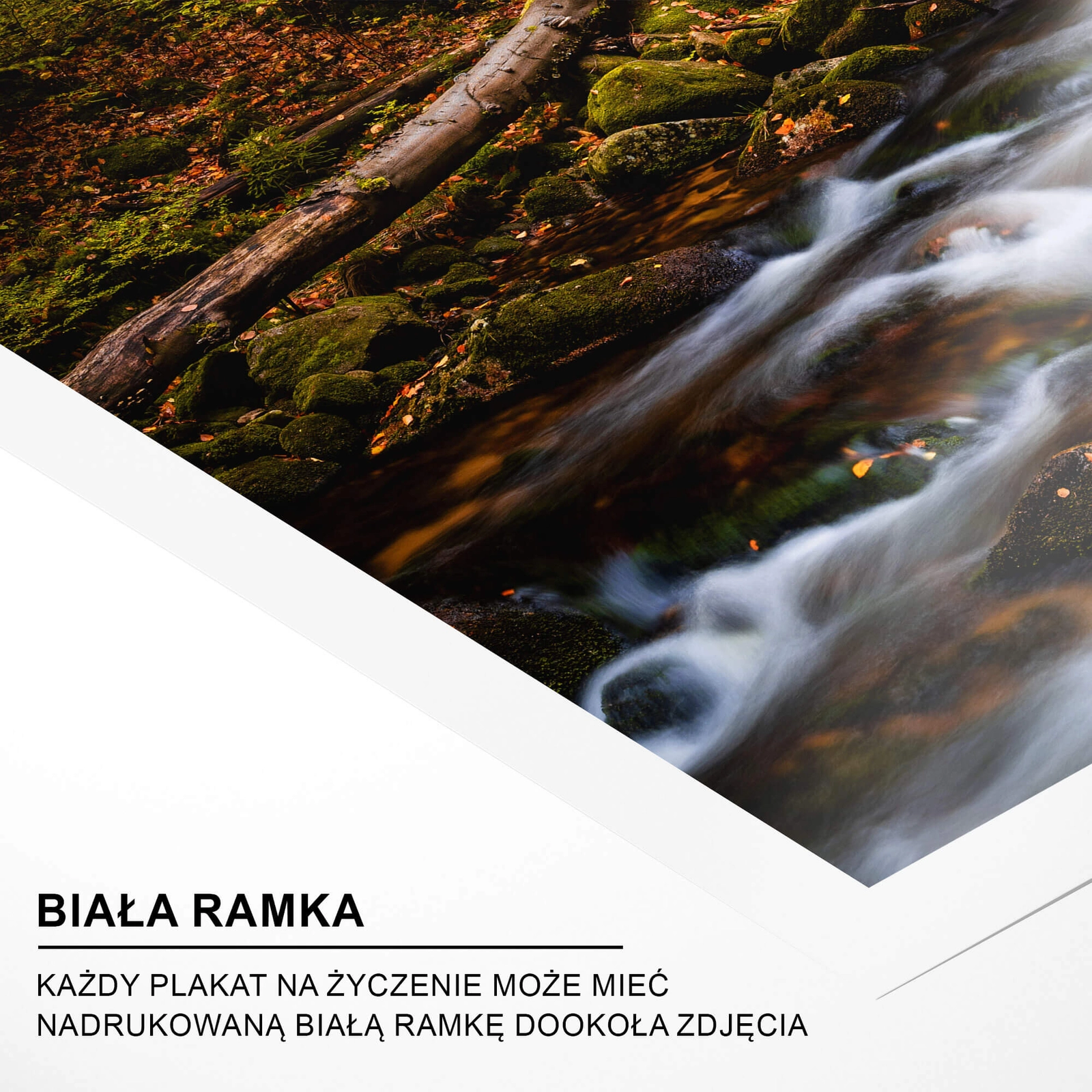 - Plakat leśny potok to piękny, przyrodniczy plakat z widokiem na rzekę przepływającą przez las w jesiennej odsłonie kolorystycznej. Zdjęcie przedstawia niesamowitą scenerię, która otacza wodospad Szklarki.