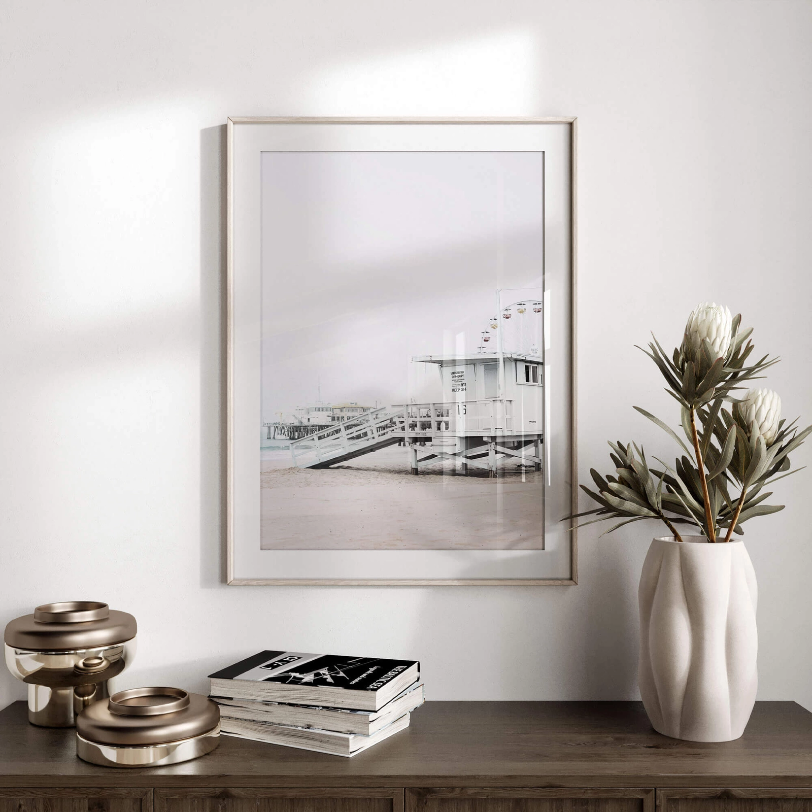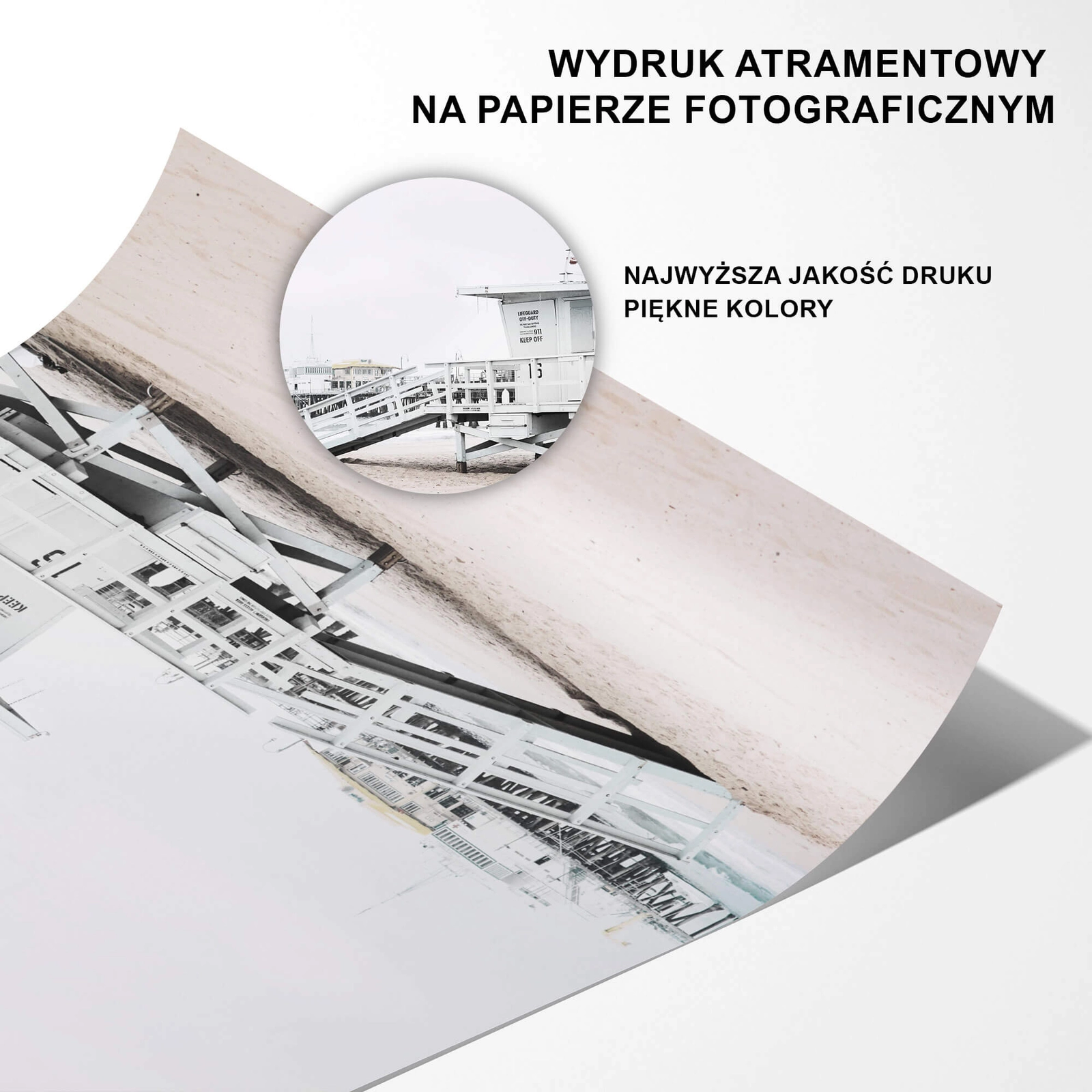 - Piękny plakat krajobrazowy przedstawiający wieżę ratowniczą na jednej z plaż. Kolorystyka plakatu sprawia, że patrząc na niego poczujesz spokój. Idealnie komponuje się z innymi plakatami krajobrazowymi i może stanowić uzupełnienie domowej galerii.