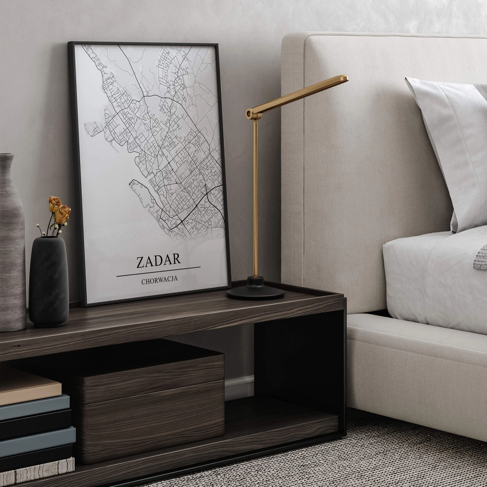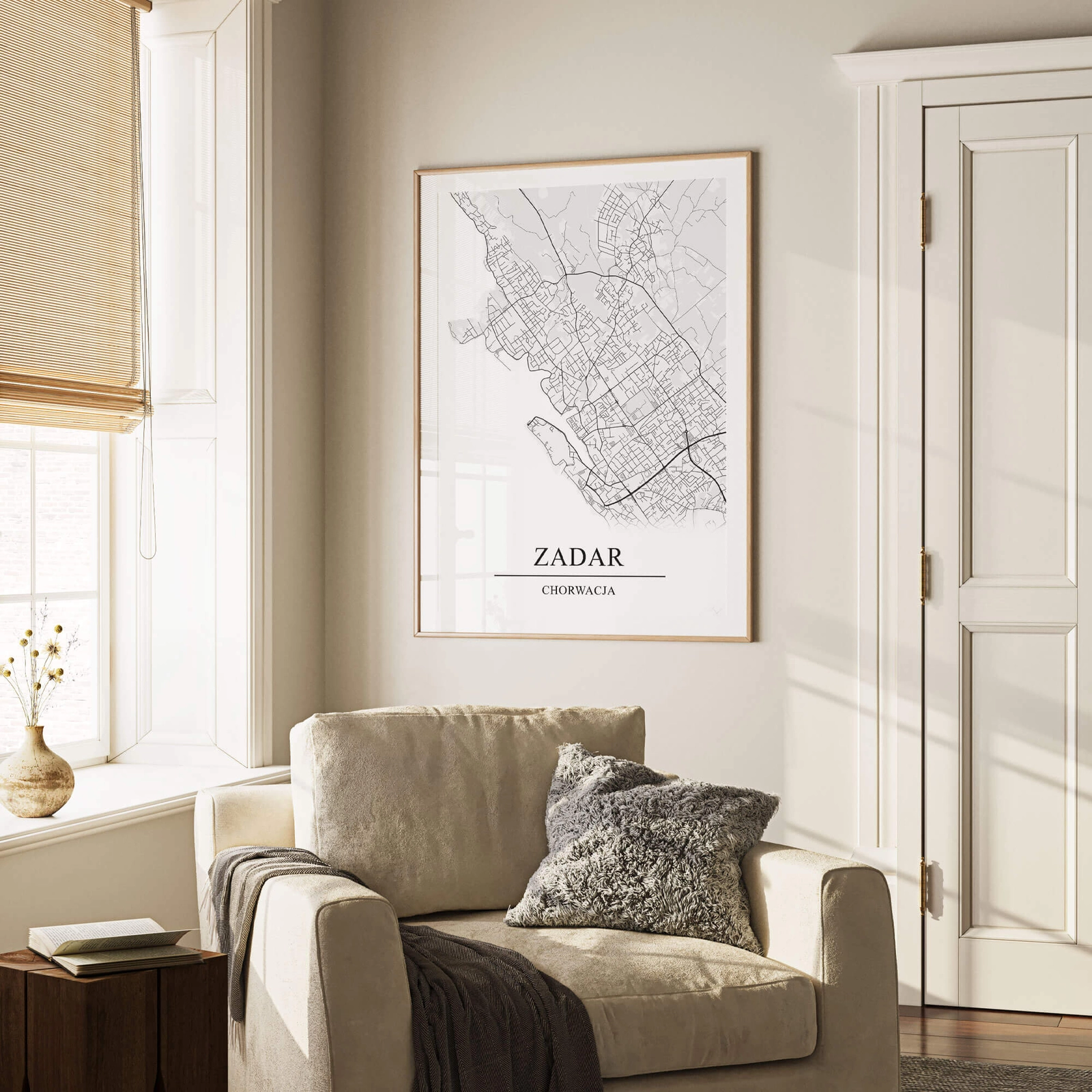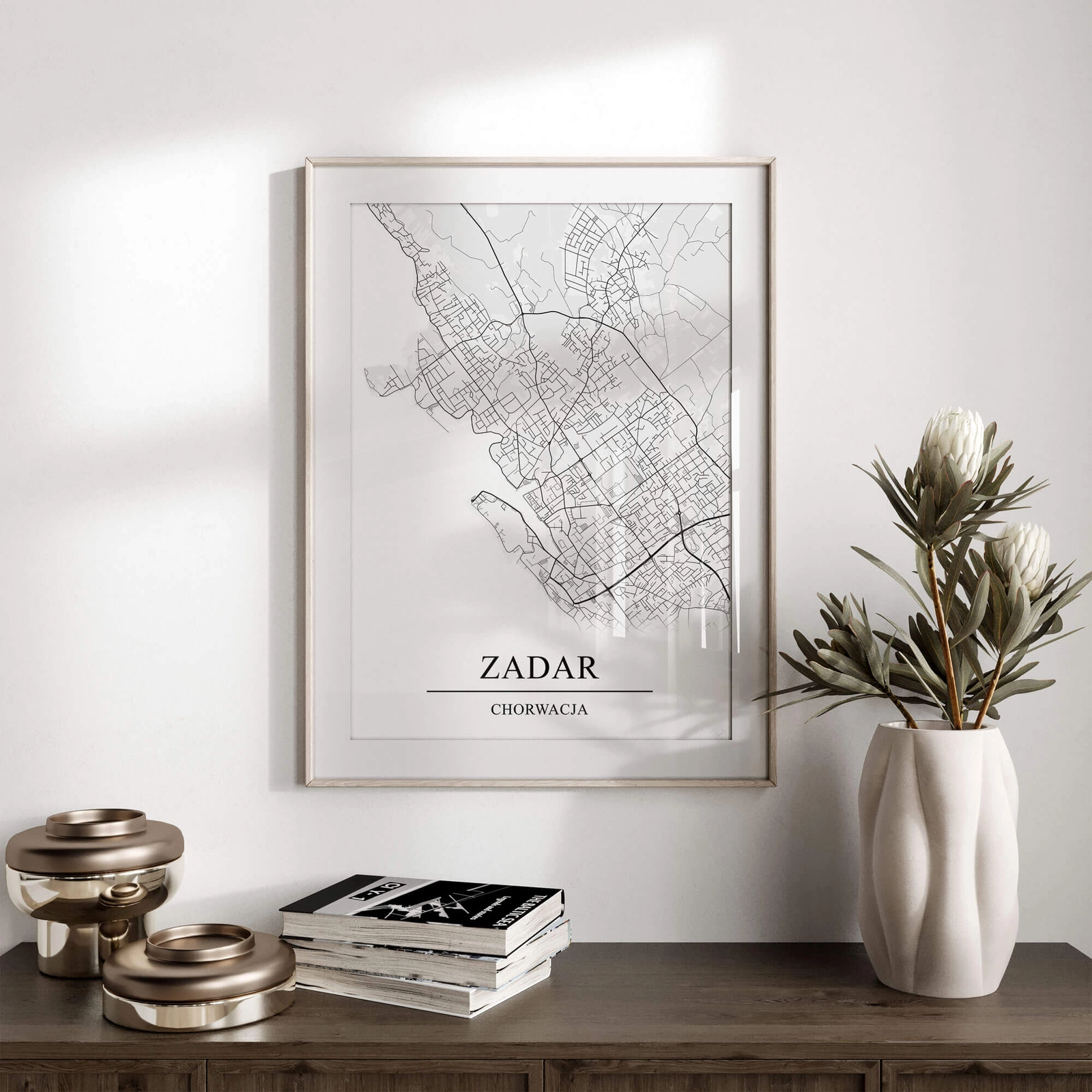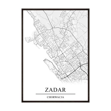 - Plakat graficzny z mapą Zadaru to połączenie minimalistycznego designu z precyzyjnie odwzorowaną mapą tego miasta. Czarno biały kolor dodaje uroku i ponadczasowej elegancji co czyni go idealnym uzupełnieniem niemal każdego wystroju wnętrza.