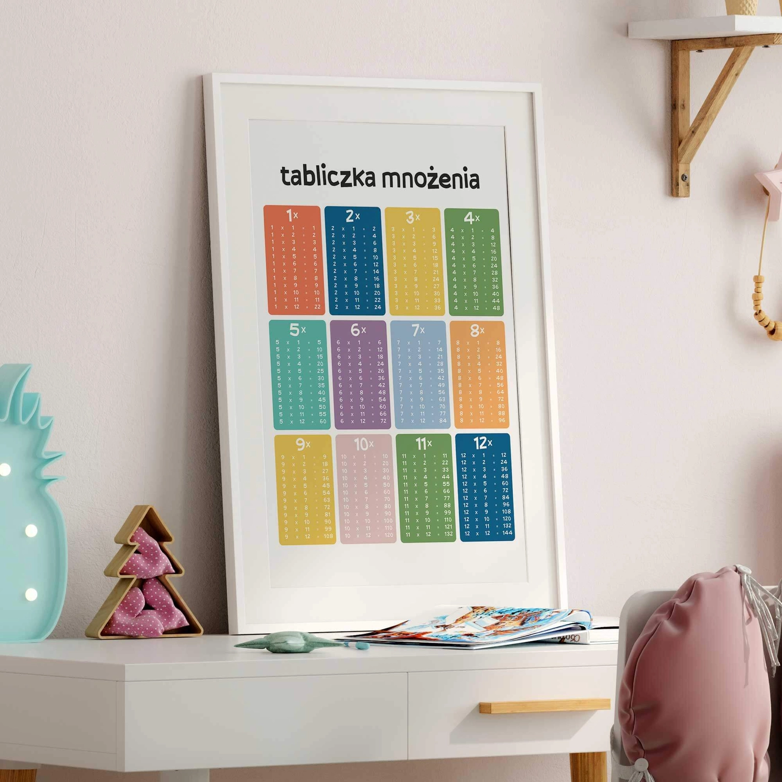 - Kolorowy i przejrzysty plakat z tabliczką mnożenia to idealna pomoc naukowa dla dzieci. Doskonale sprawdzi się w pokoju dziecka, sali lekcyjnej lub świetlicy. Ułatwia zapamiętywanie i naukę poprzez atrakcyjny wizualnie układ oraz wyraźne kolory.