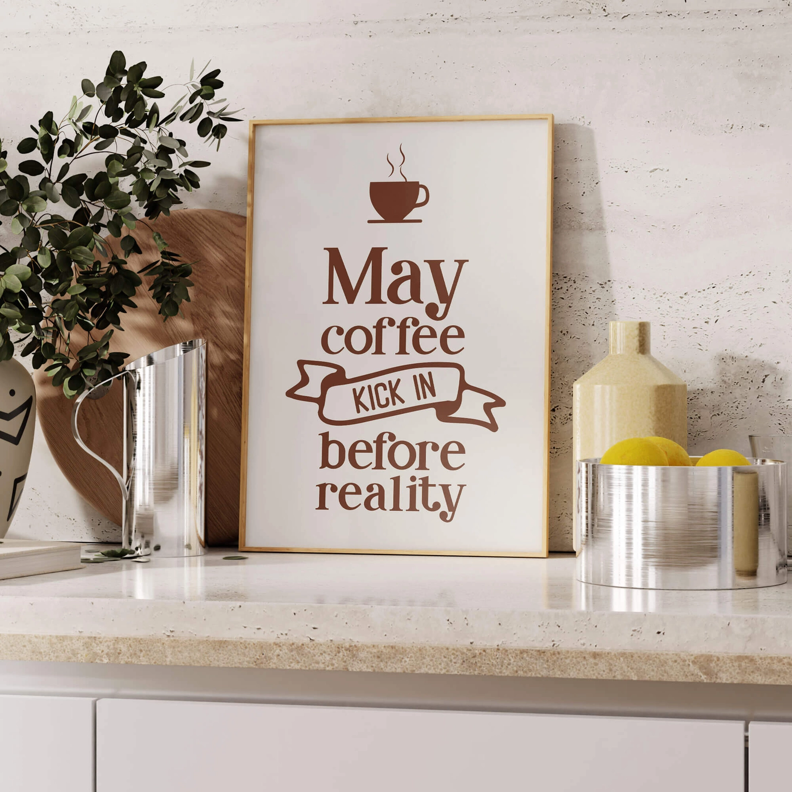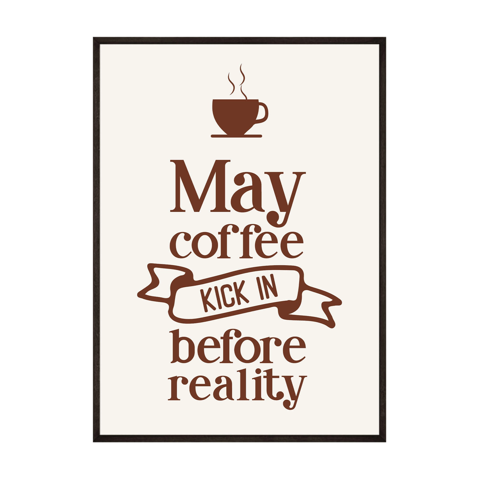 - Stylowy plakat dla wszystkich miłośników kawy, którzy wiedzą, że dzień należy zacząć od porządnej dawki kofeiny. Minimalistyczna grafika, ciepłe barwy i humorystyczny przekaz sprawią, że plakat będzie świetną dekoracją do kuchni czy kącika kawowego.