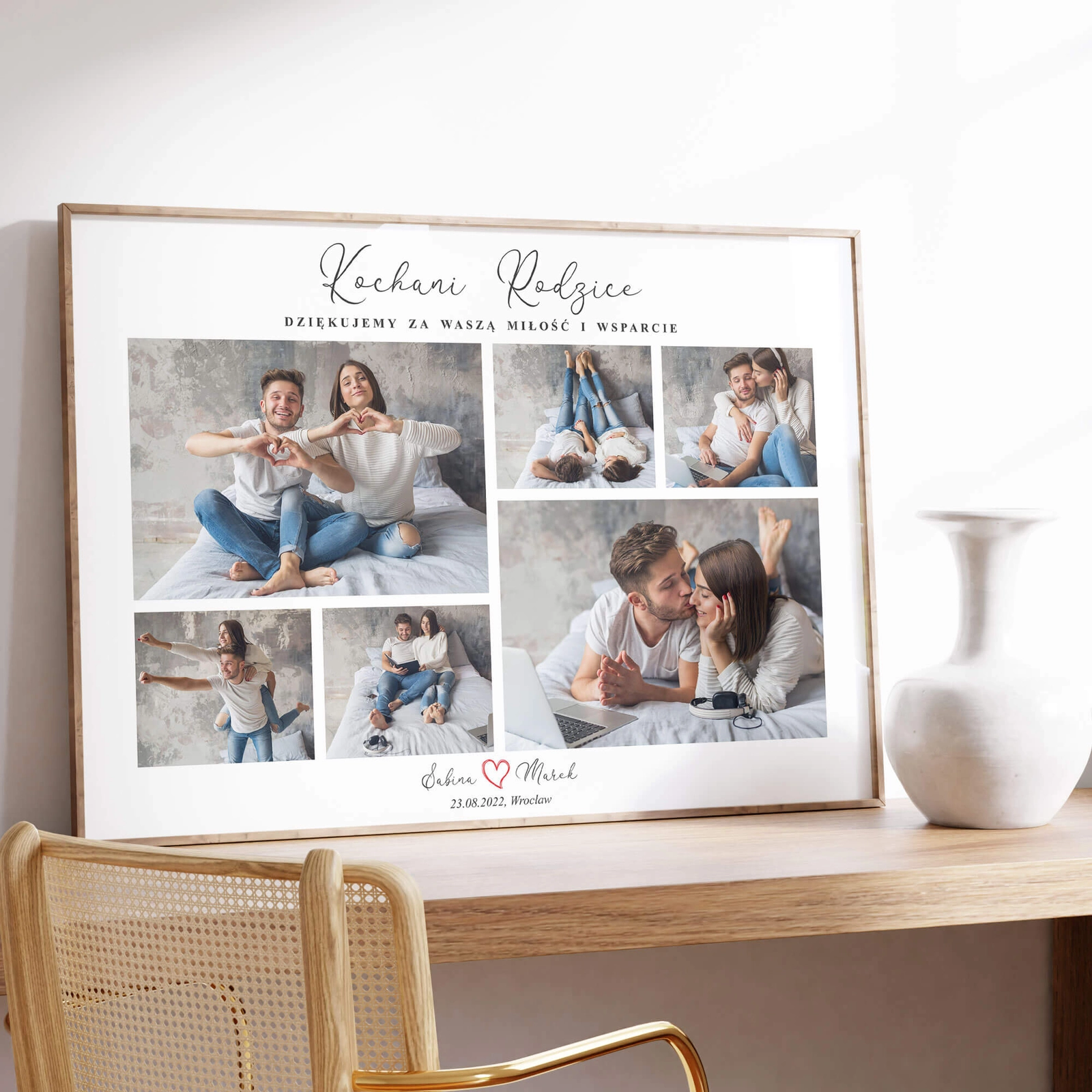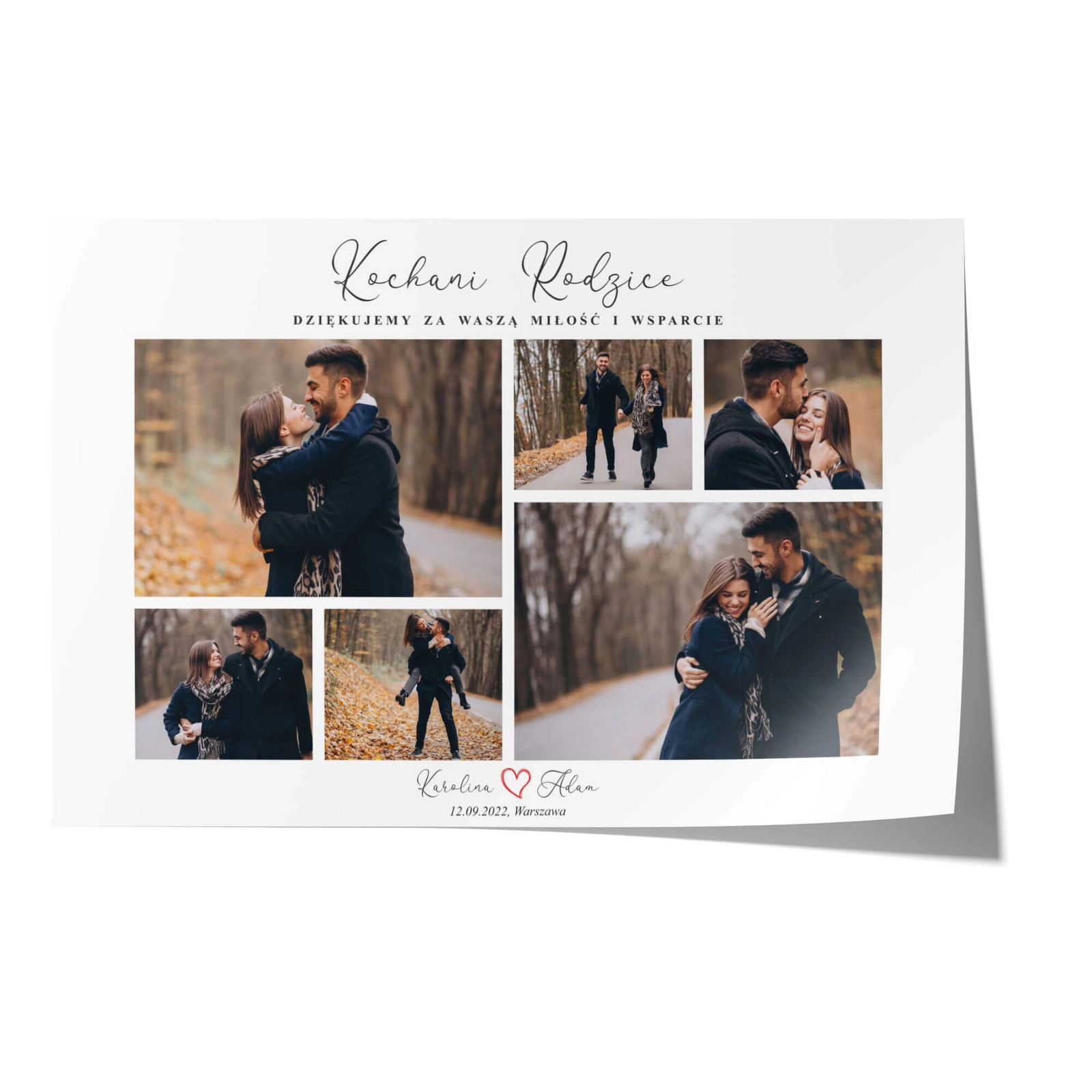 Plakat podziękowanie dla rodziców kolaż 6 zdjęć