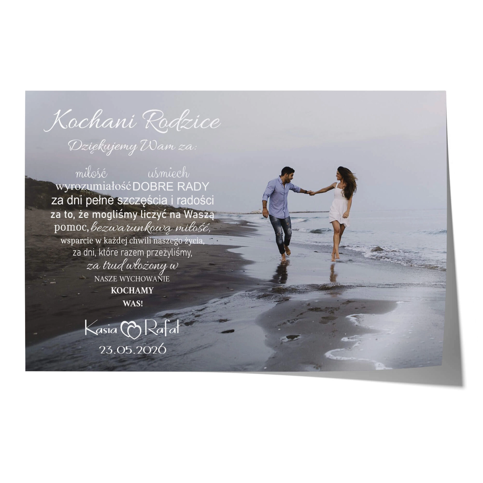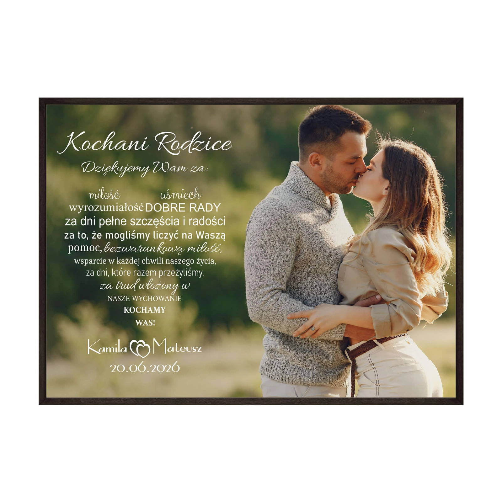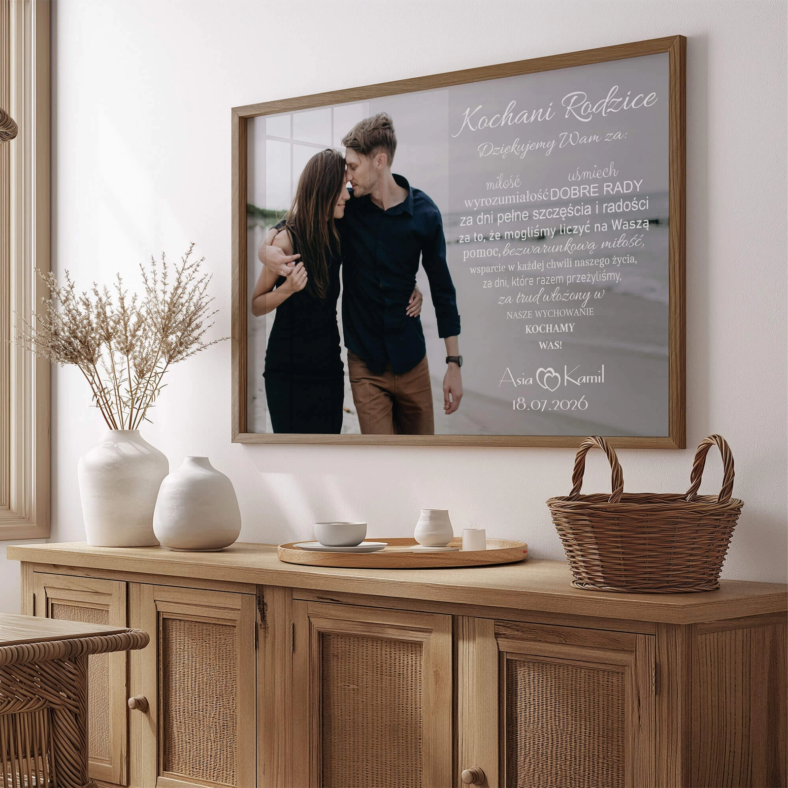 - Personalizowany plakat ze zdjęciem to bardzo osobisty sposób podziękowania rodzicom podczas ślubu. Wręczany w ważnym momencie ceremonii staje się trwałą pamiątką, która zostaje z nimi na lata jako symbol wdzięczności i wspólnie przeżytej drogi.
