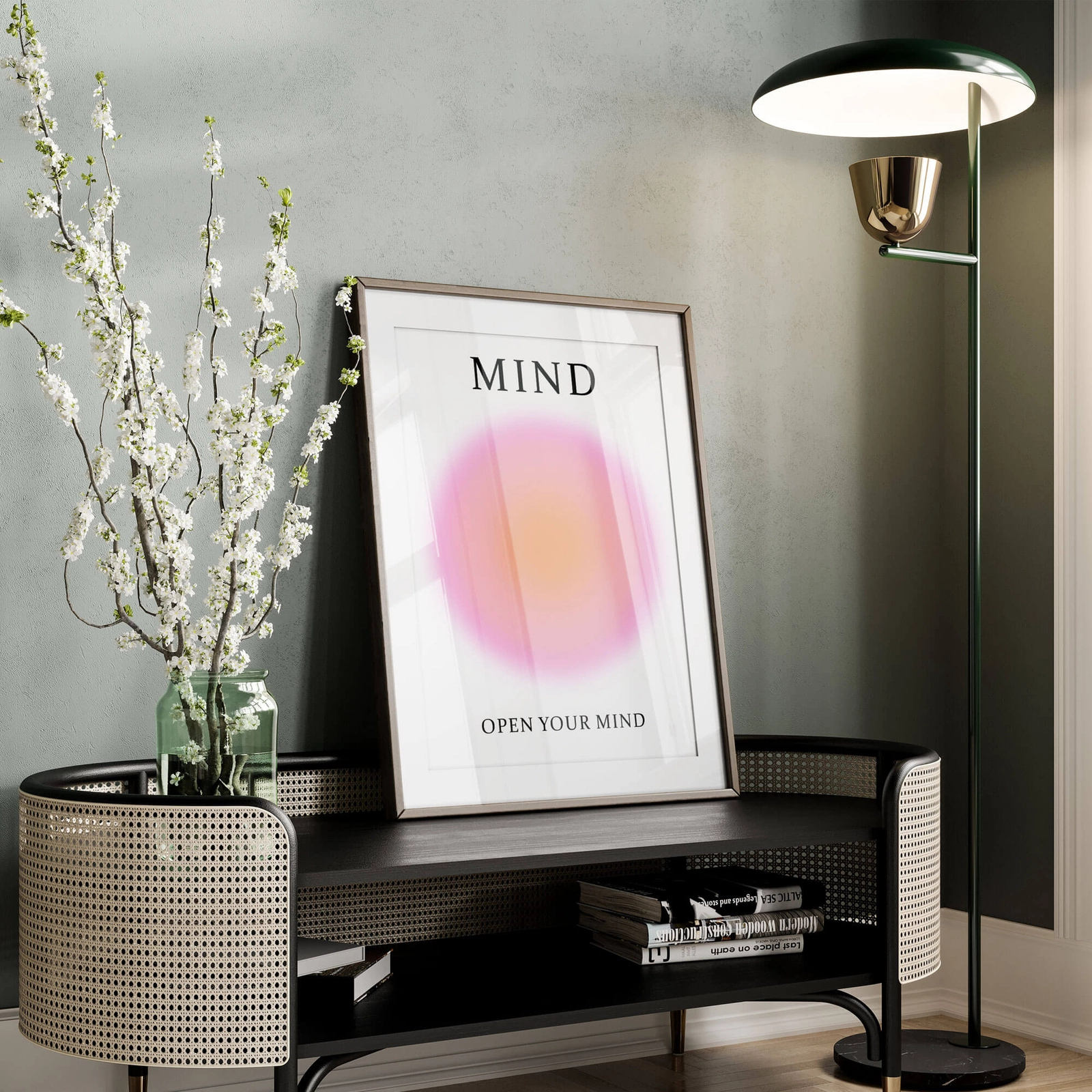- Niezwykły plakat graficzny, na którym znalazła się ilustracja symbolizująca aurę umysłu. Całość uzupełniają napisy "Mind" oraz "Open Your Mind". Jest to pierwszy plakat z naszej nowej serii plakatów "Positive Aura".