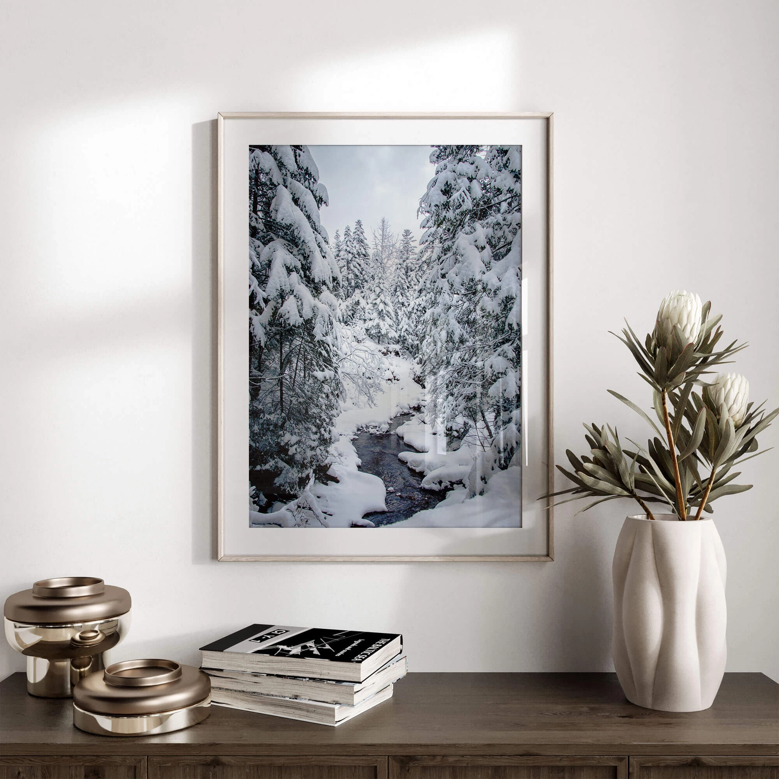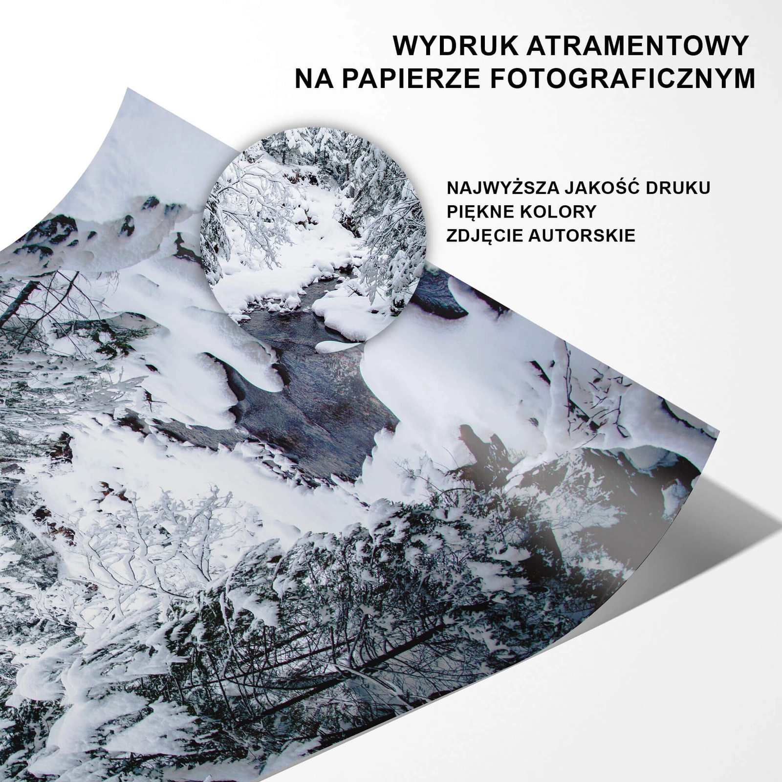 - Plakat prawdziwa zima to autorski plakat krajobrazowy przedstawiający niezwykłą, zimową scenerię, w której pokryte śniegiem drzewa pochylają się nad rzeką. Dzięki naszym zimowym plakatom możesz wnieść odrobinę magii do swojego domu.
