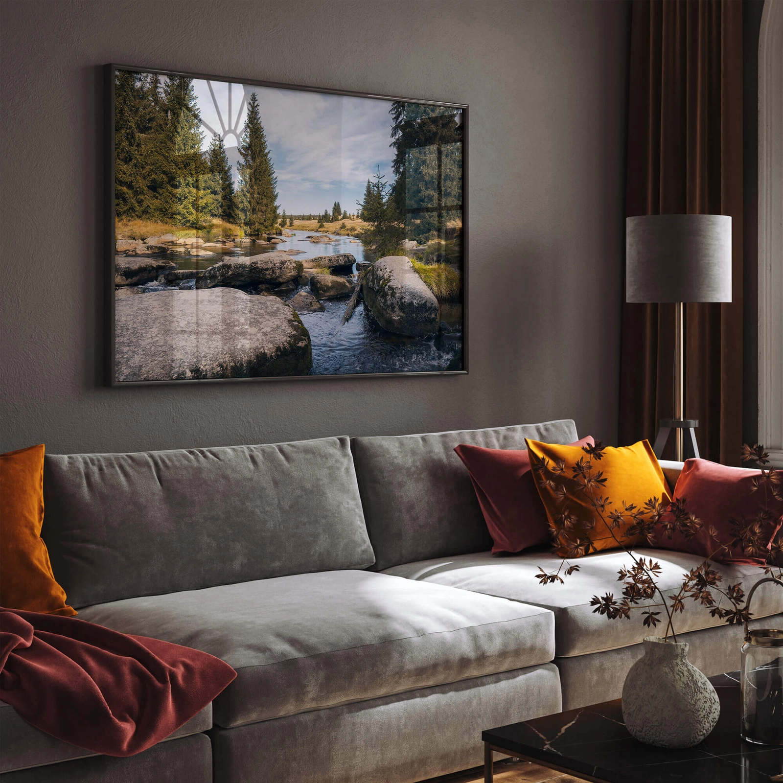 - Plakat rzeka to piękny plakat fotograficzny ukazujący rzekę Izerę w jesiennej odsłonie kolorystycznej. Taką grafikę bez problemu wykorzystasz nie tylko w nowoczesnej aranżacji, ale również w pomieszczeniach urządzonych w stylu klasycznym.