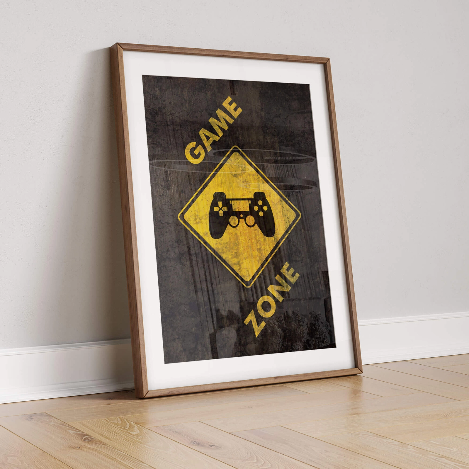 - Plakat o wyraźnym, industrialnym charakterze, zaprojektowany do przestrzeni do grania i domowych stref gier. Centralny motyw znaku z kontrolerem oraz kontrastowa kolorystyka pasują do nowoczesnych, technicznych wnętrz.