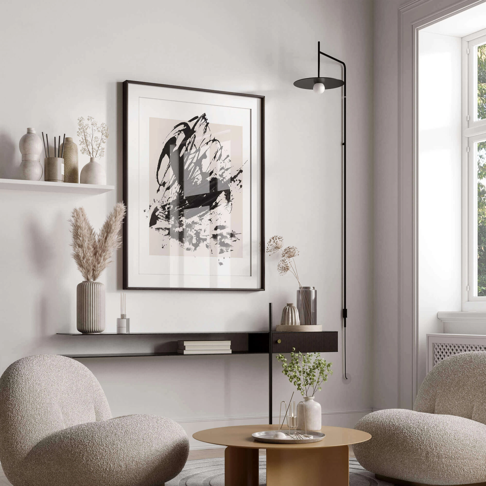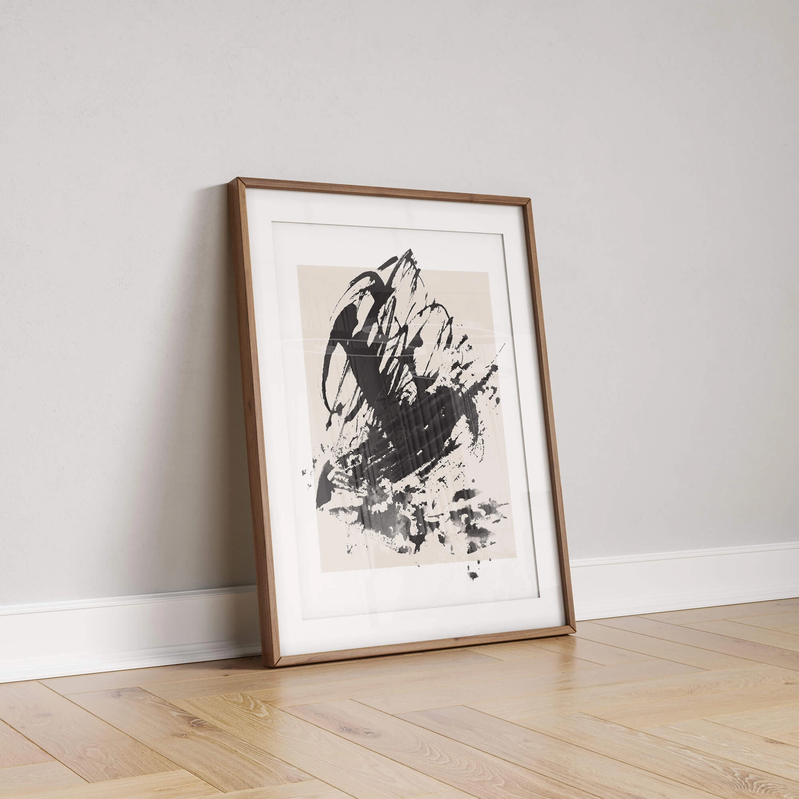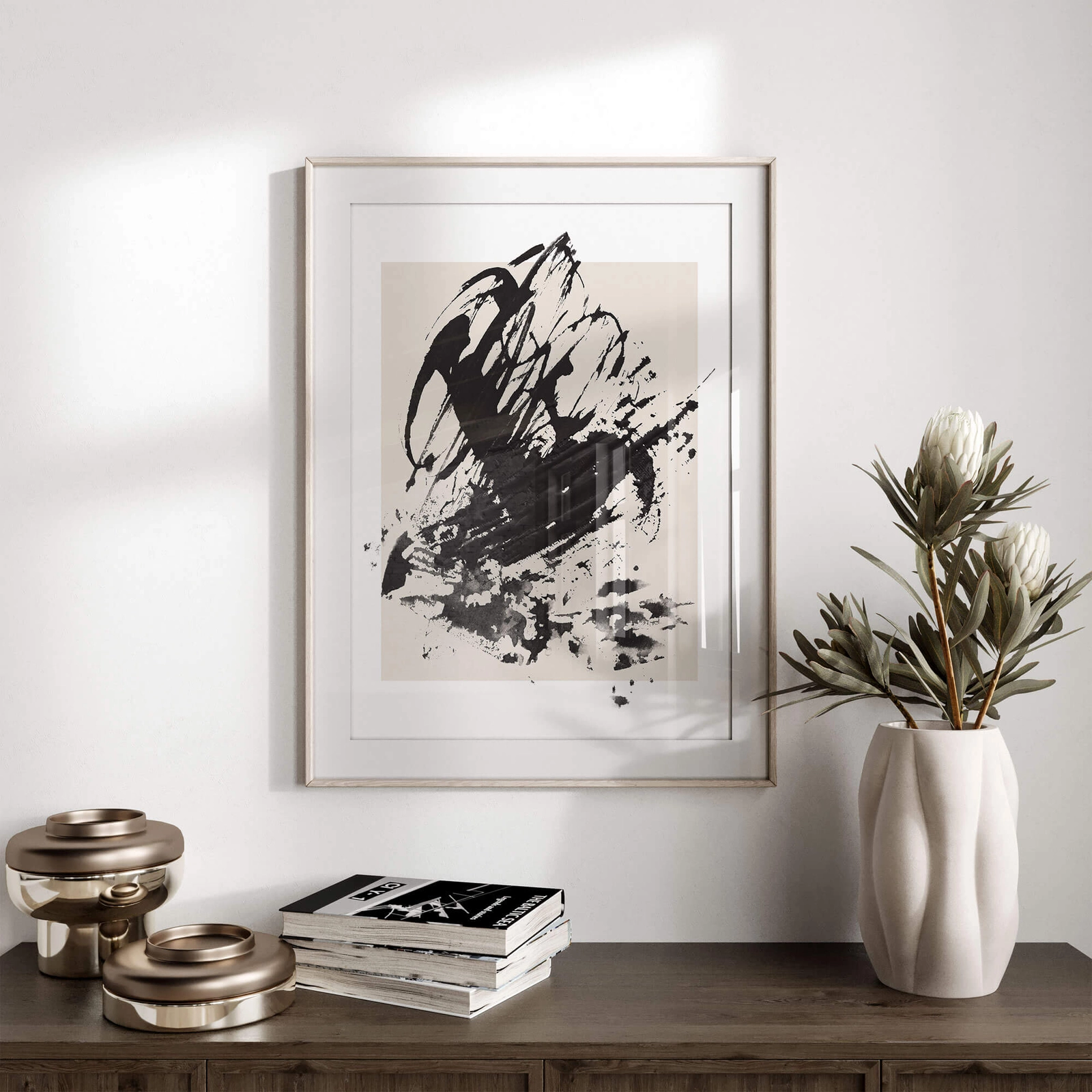 - Plakat The Abstract to przepiękna grafika, na której znajdują się czarne maźnięcia farbą na beżowym tle. Grafika jest bardzo nowoczesna i doskonale odnajdzie się w modernistycznych wnętrzach.