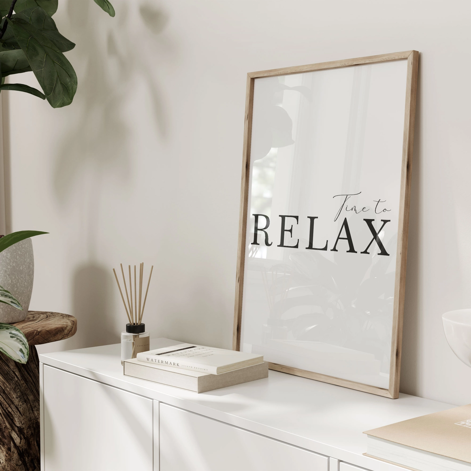 - Plakat Time To Relax czyli po prostu czas na relaks to typograficzna kompozycja, która idealnie sprawdzi się zarówno w salonie jak i sypialni. Plakat może wisieć sam, ale może być też uzupełnieniem domowej galerii obrazów.