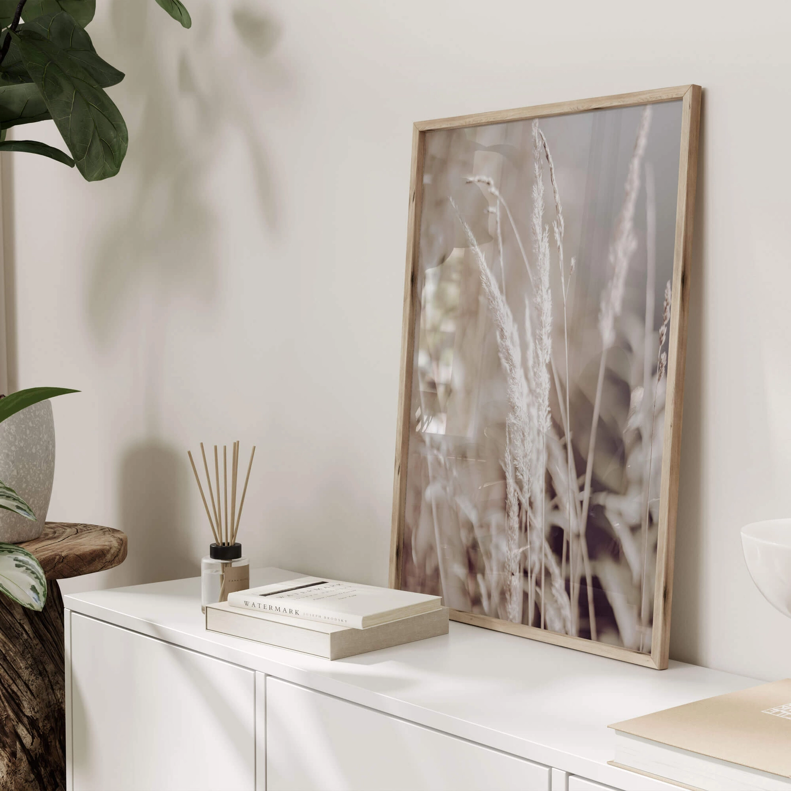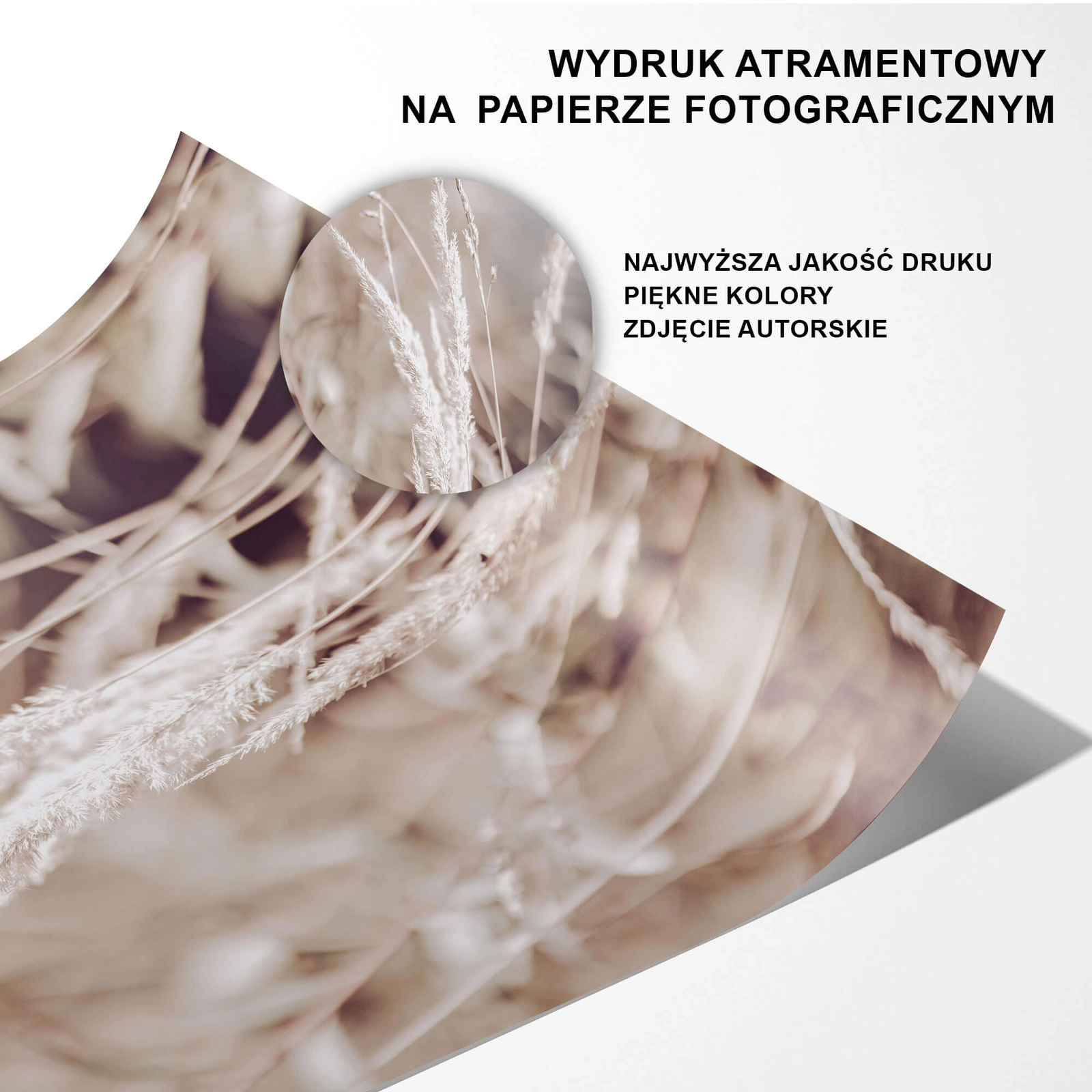 - Piękny plakat przyrodniczy ukazujący w zbliżeniu trawy trzcinowe delikatnie poruszające się na wietrze. Sam plakat poprzez tonację kolorystyczną emanuje spokojem i szczególnie dobrze może wyglądać w towarzystwie innych plakatów pejzażowych.