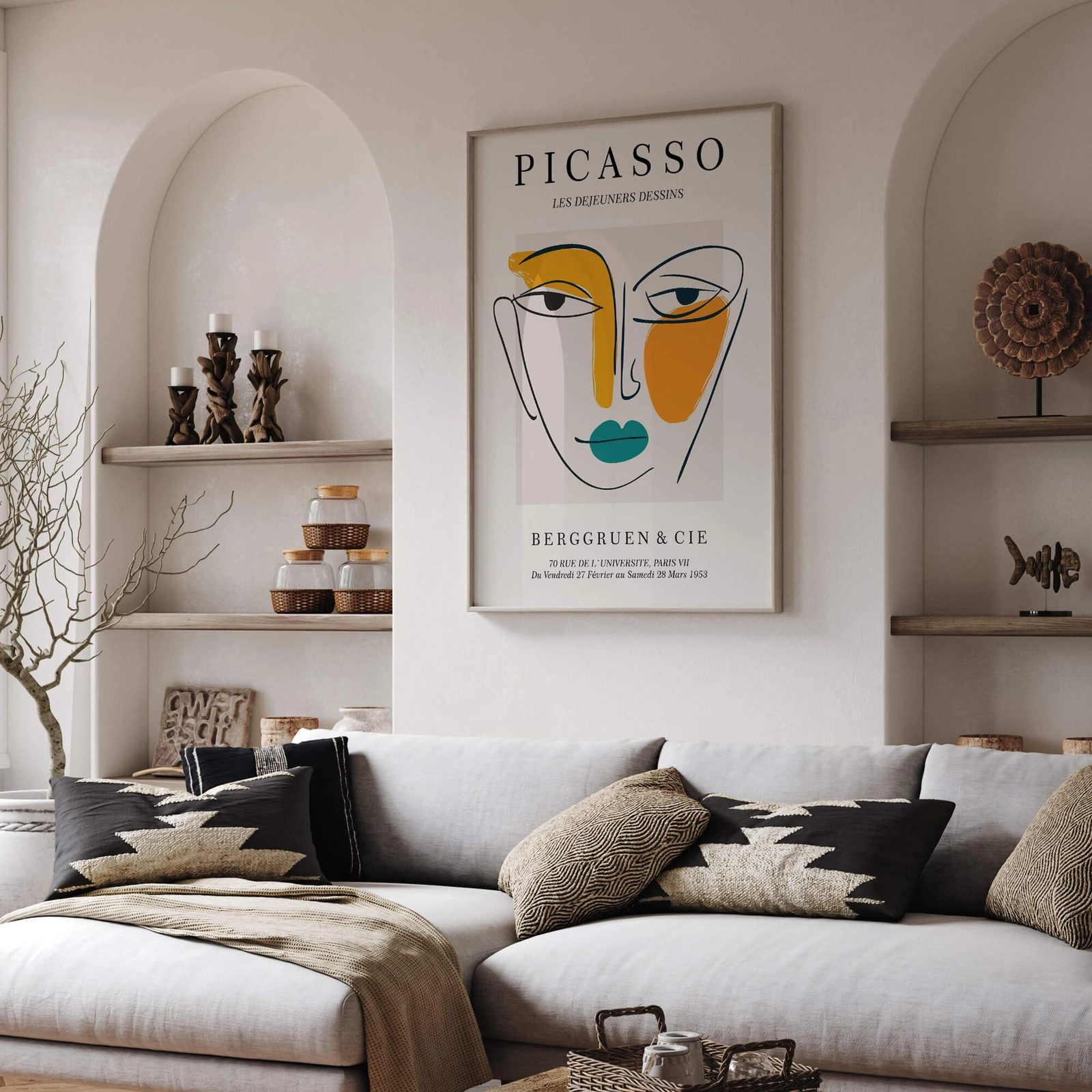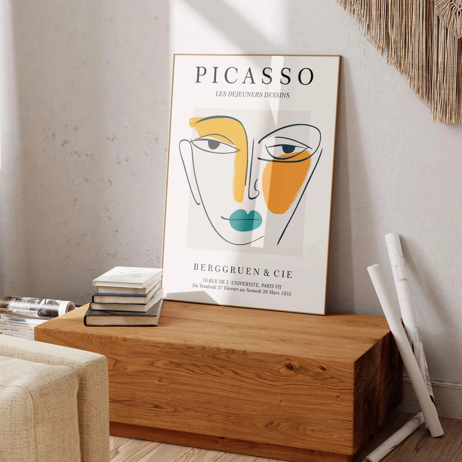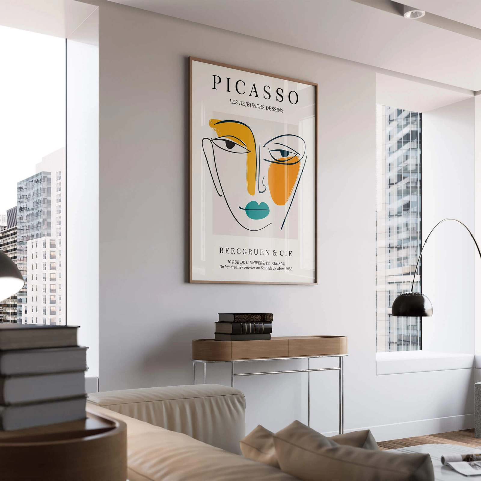 - Stylowy plakat inspirowany twórczością Pabla Picassa to doskonały sposób, by wprowadzić do wnętrza nutę artystycznej elegancji. Abstrakcyjna twarz narysowana prostą linią z kolorowymi akcentami doskonale komponuje się z nowoczesnymi aranżacjami.