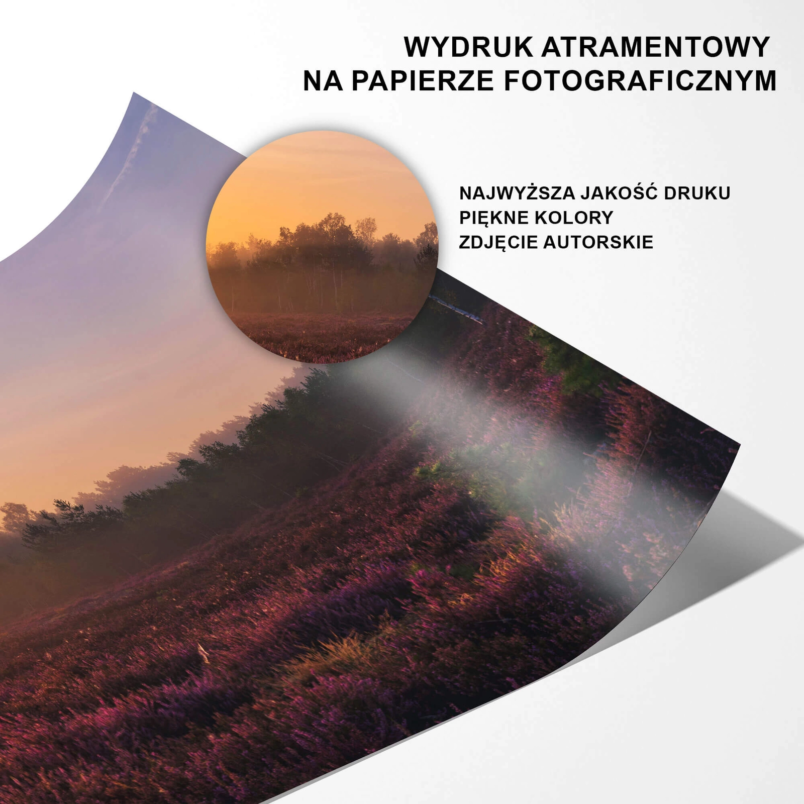 - Plakat wrzosowe pole to kolejny plakat z naszej kolekcji autorskich zdjęć, które zrobione zostały na polach wrzosowych w blasku wschodu słońca. Pomarańczowe niebo oraz fioletowe wrzosy w połączeniu ze sobą tworzą bajkową kompozycję.