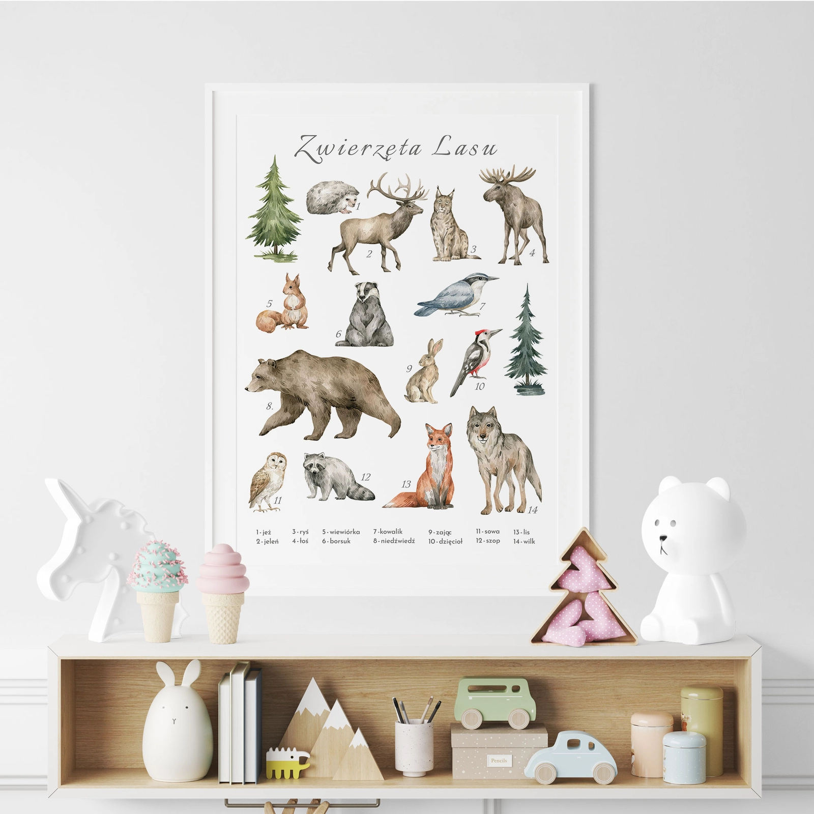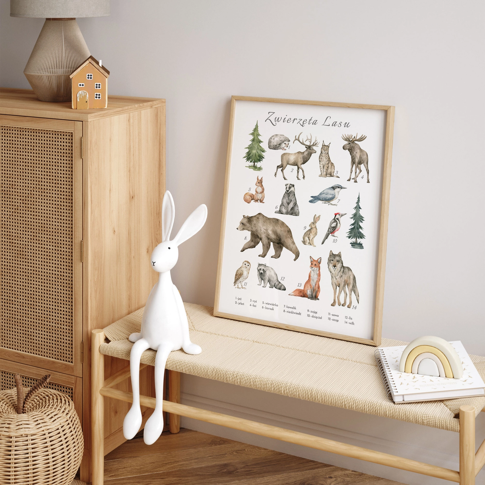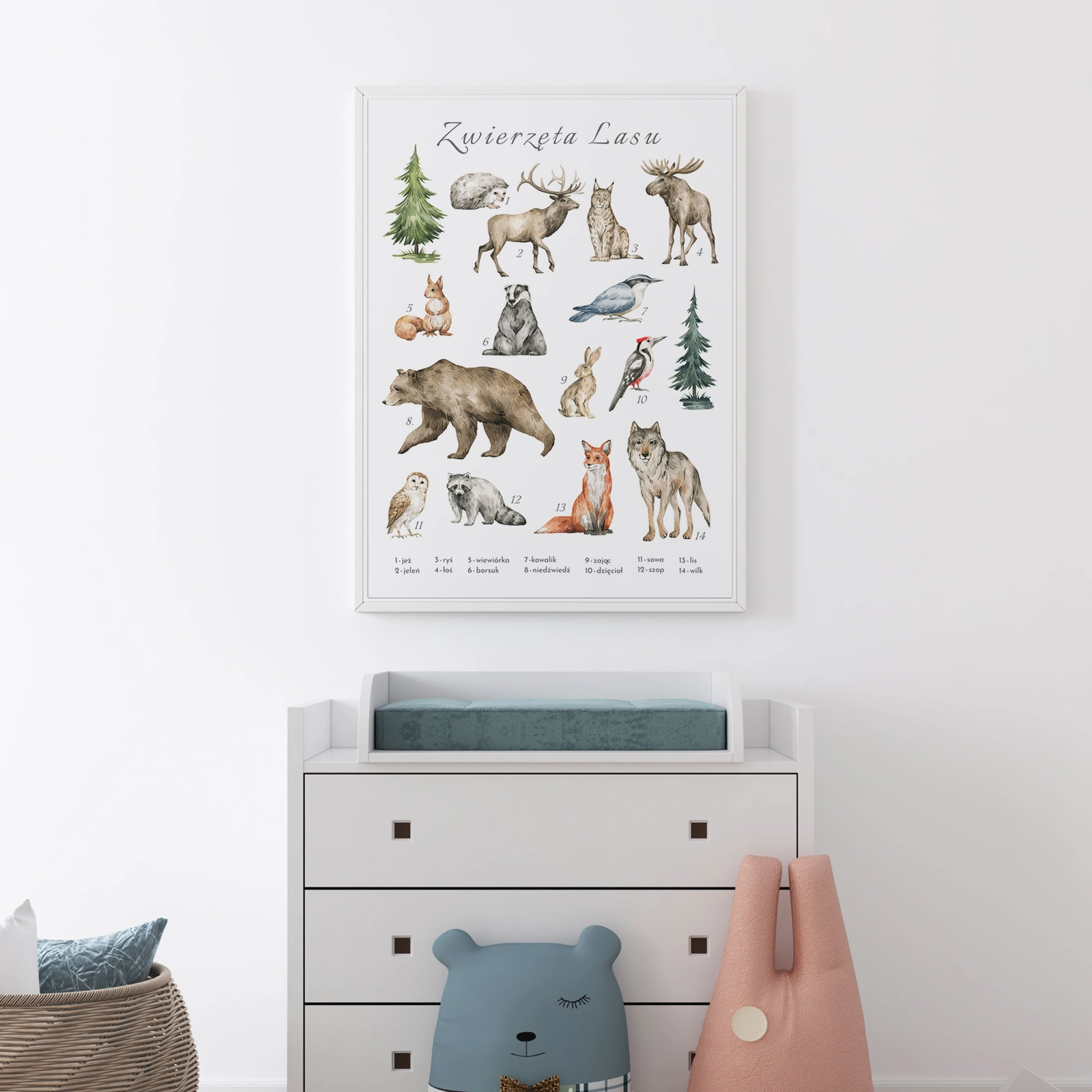 - Plakat zwierzęta lasu to urocza grafika z motywem leśnych zwierząt, która rozpoczyna naszą nową kolekcję plakatów edukacyjnych dla najmłodszych. Jest to stylowa dekoracja, która nie tylko uczy, ale również świetnie wygląda w każdym dziecięcym pokoju.