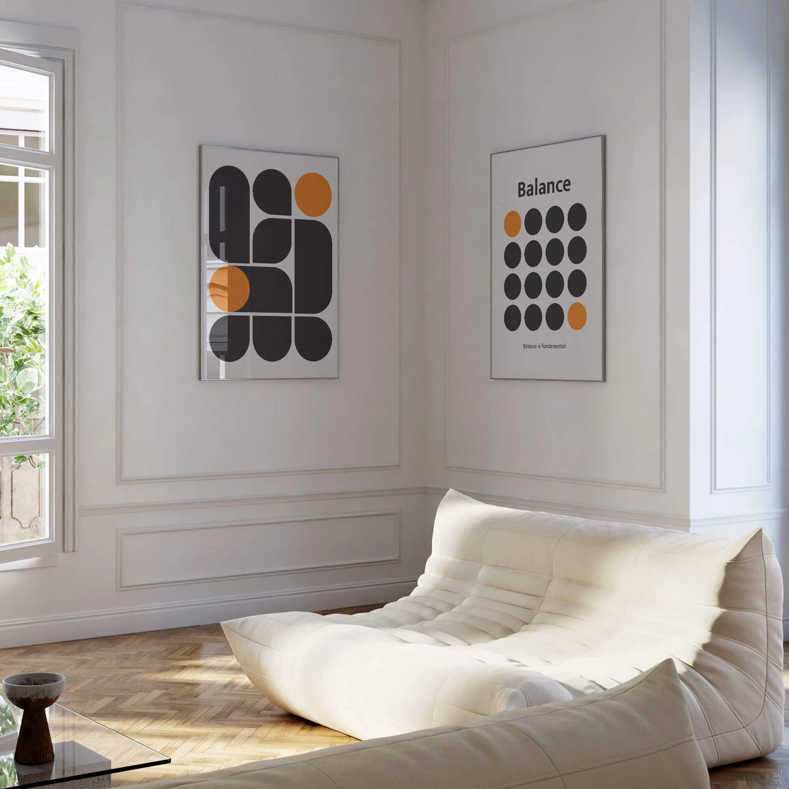 - Nowoczesny zestaw dekoracyjny oparty na prostych formach i spokojnej geometrii, przeznaczony do współczesnych wnętrz. Abstrakcyjne kształty, stonowana kolorystyka i subtelny akcent tekstowy tworzą uporządkowaną, wizualnie lekką całość.