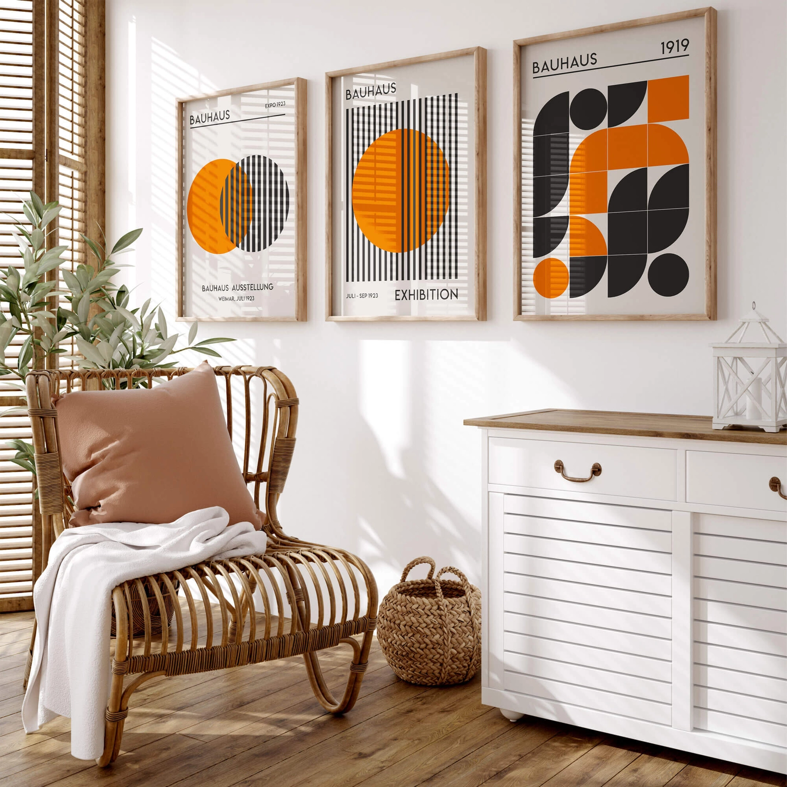 - Ożyw swoje wnętrze zestawem 3 plakatów inspirowanych stylem Bauhaus! Każdy z plakatów przedstawia geometryczny wzór na eleganckim beżowym tle. Ten nowoczesny zestaw plakatów doskonale wpasuje się w każdą przestrzeń, dodając jej artystycznego uroku.