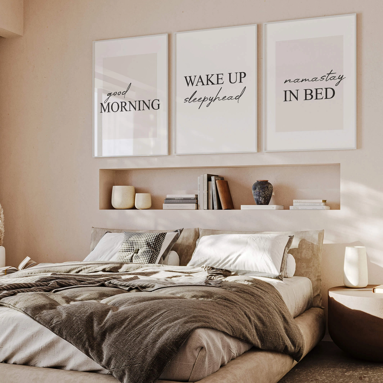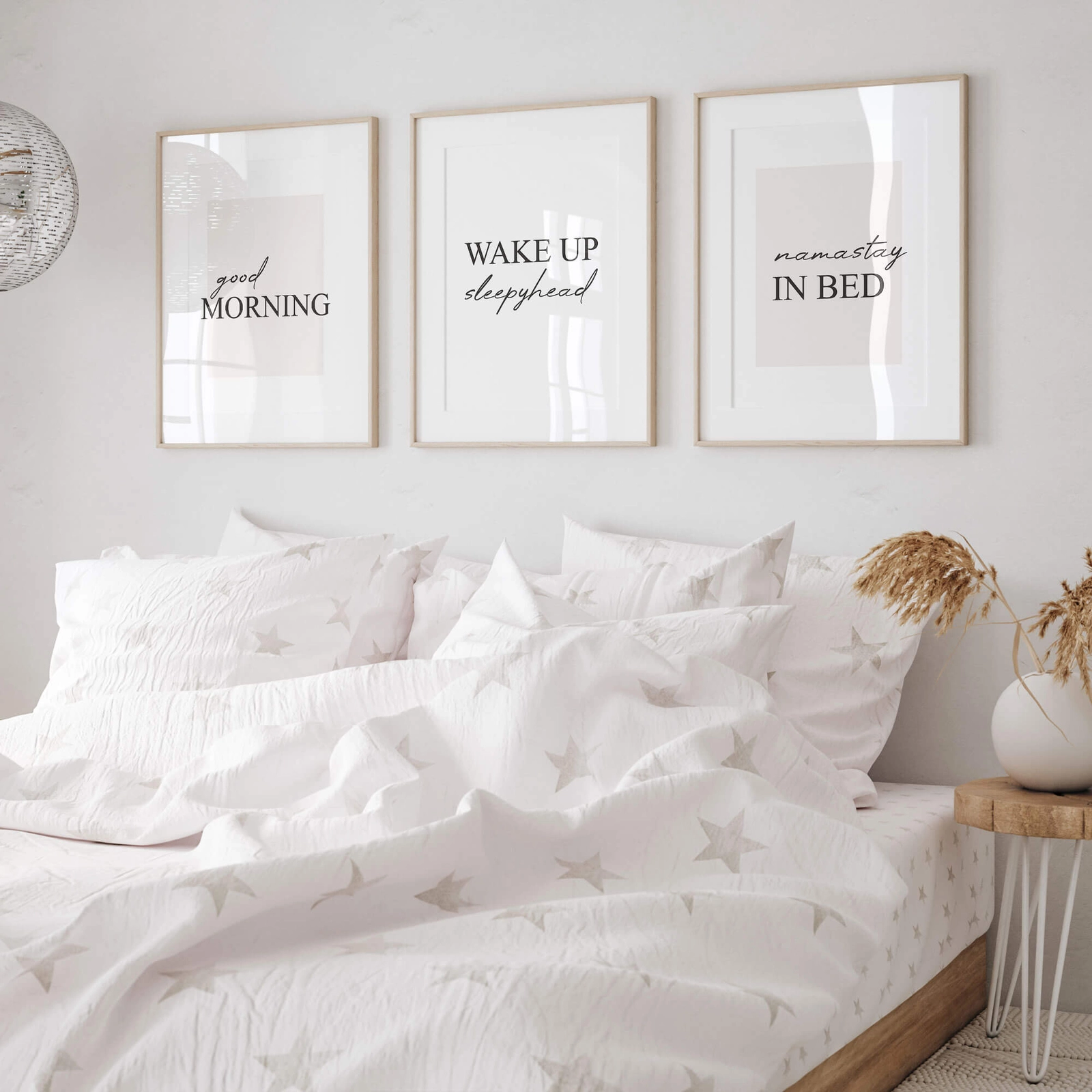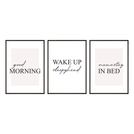 - Przepiękny, zestaw plakatów do sypialni z samymi napisami. Wystarczy, że udekorujesz nimi sypialnię i wtedy każdy dzień możesz zaczynać w dobrym nastroju, z uśmiechem na twarzy. Plakaty bez problemu dopasują się do każdego rodzaju wnętrza,