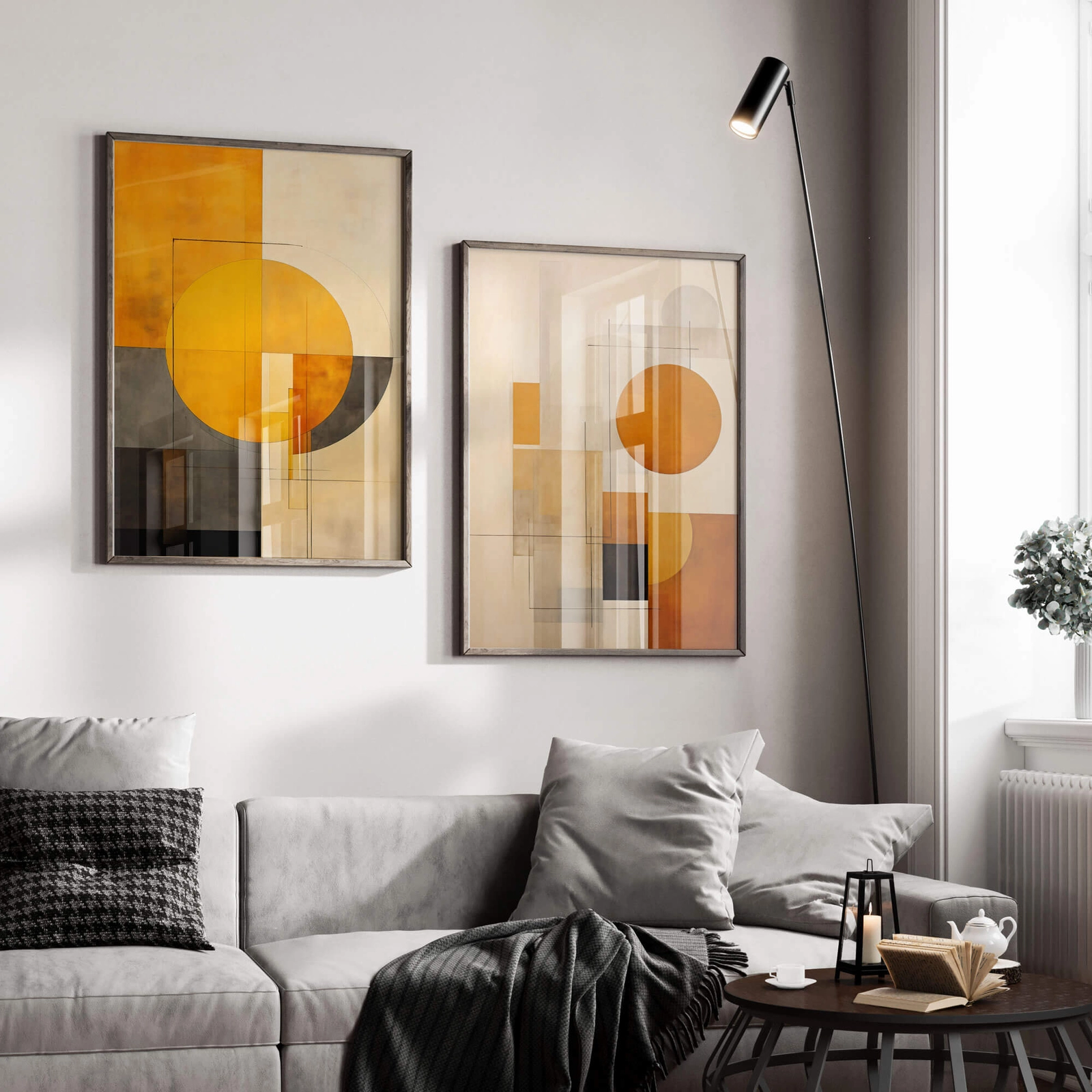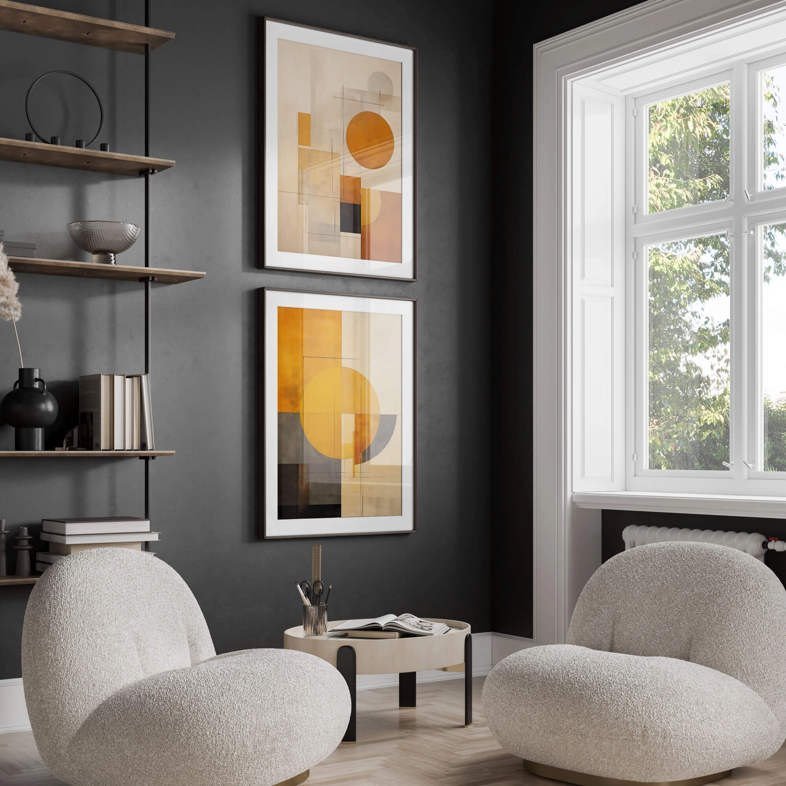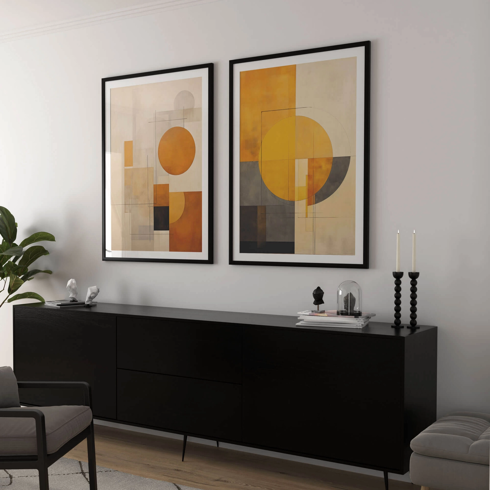- Zestaw plakatów "Minimalistyczna Równowaga" to doskonałe połączenie geometrii i ciepłej, stonowanej kolorystyki. Kompozycje oparte na prostych liniach, kołach i prostokątach przyciągają wzrok i dodają przestrzeni eleganckiego, artystycznego charakteru.