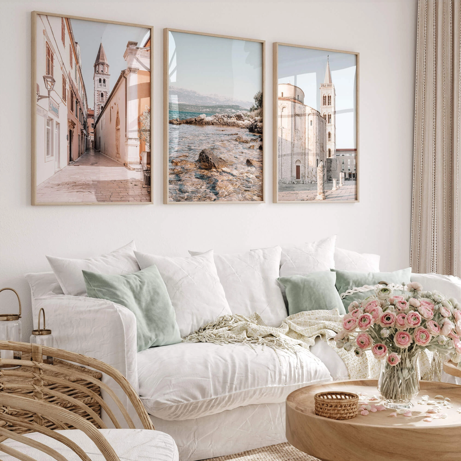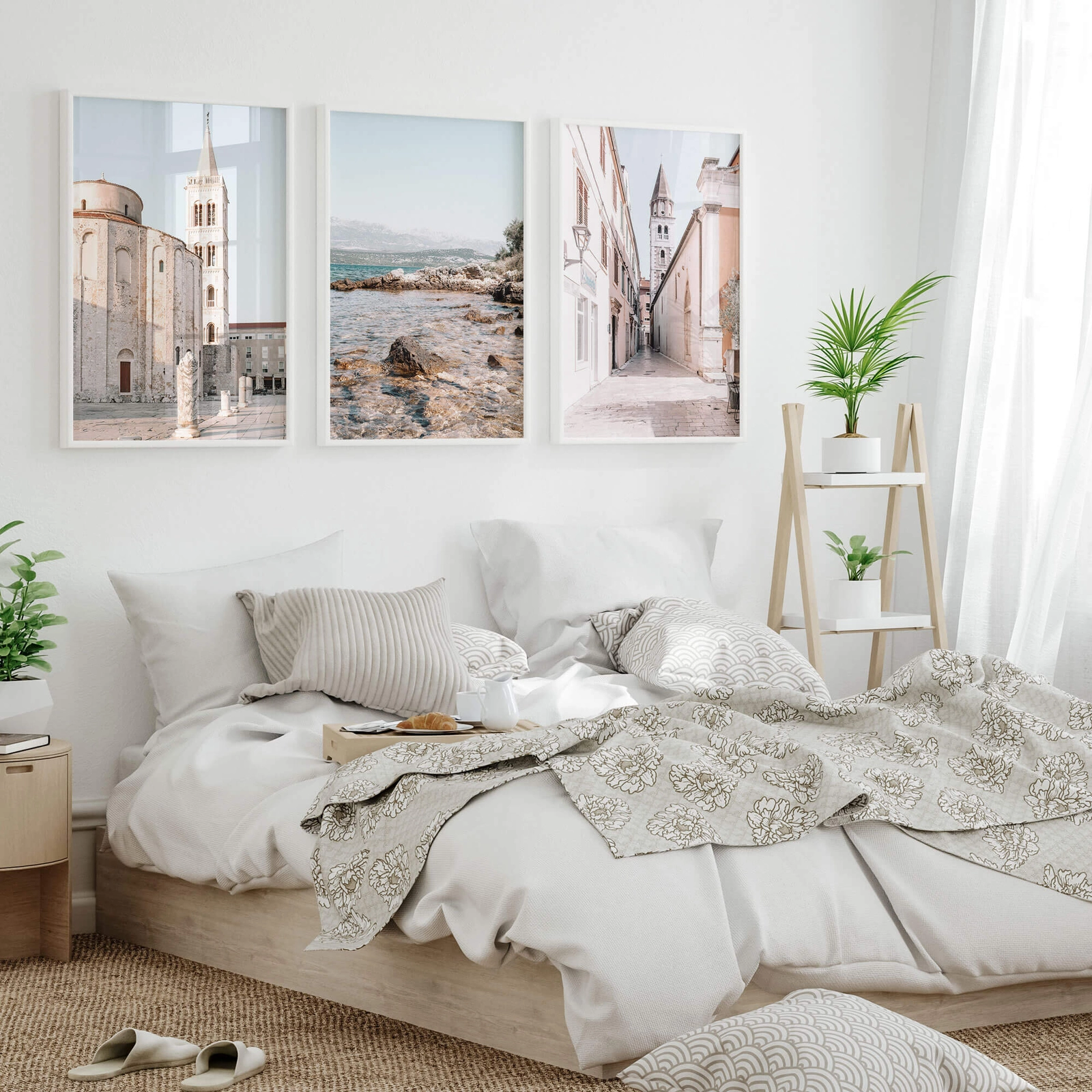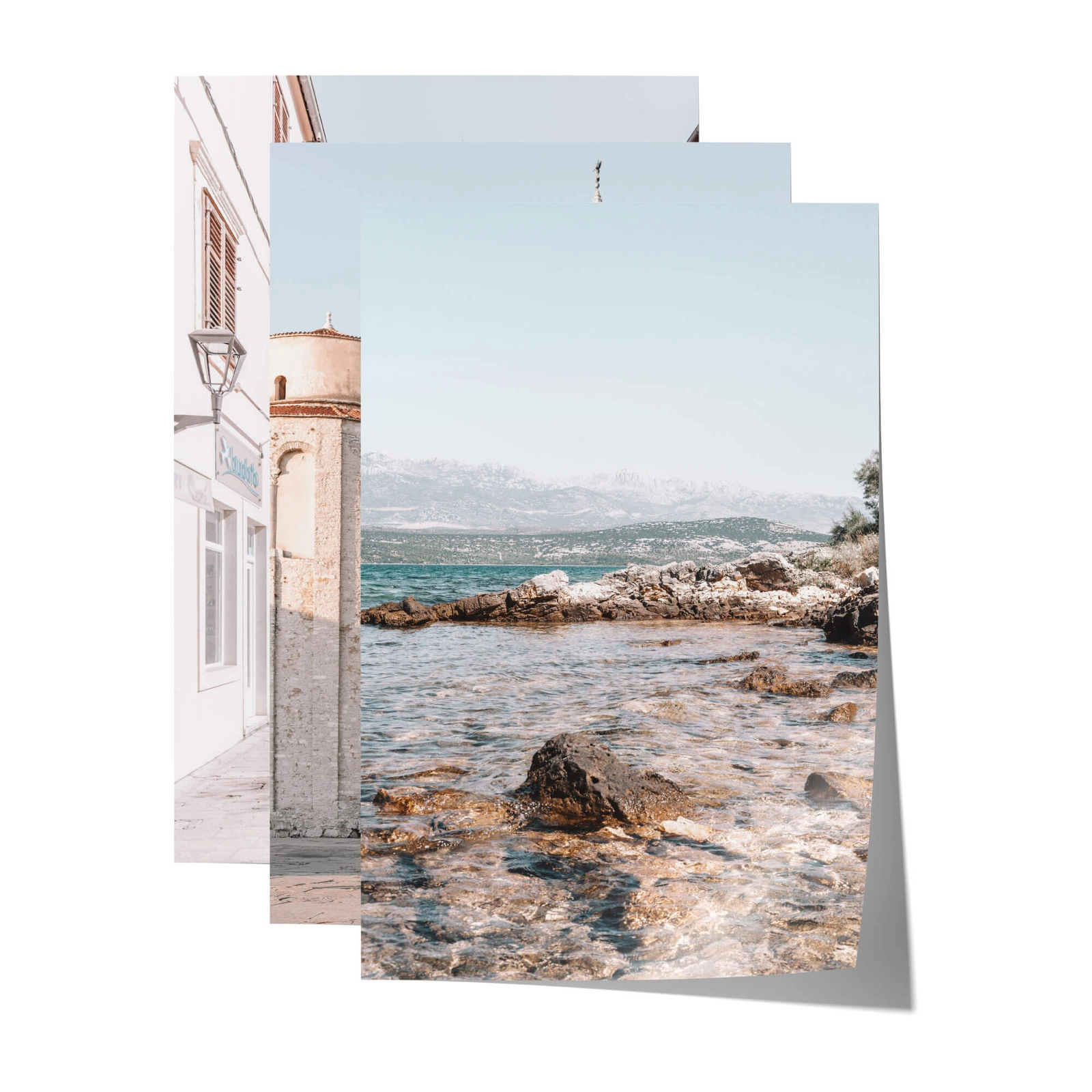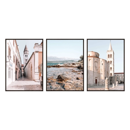 - Zestaw plakatów "Słoneczna Chorwacja" to autorskie i ciepłe kadry z Chorwacji, które wprowadzą do pomieszczenia dużo słońca i pozytywnej energii. Połączenie wąskich uliczek Zadaru z piękną plażą odmieni każde wnętrze i wniesie do niego klimat wakacji.