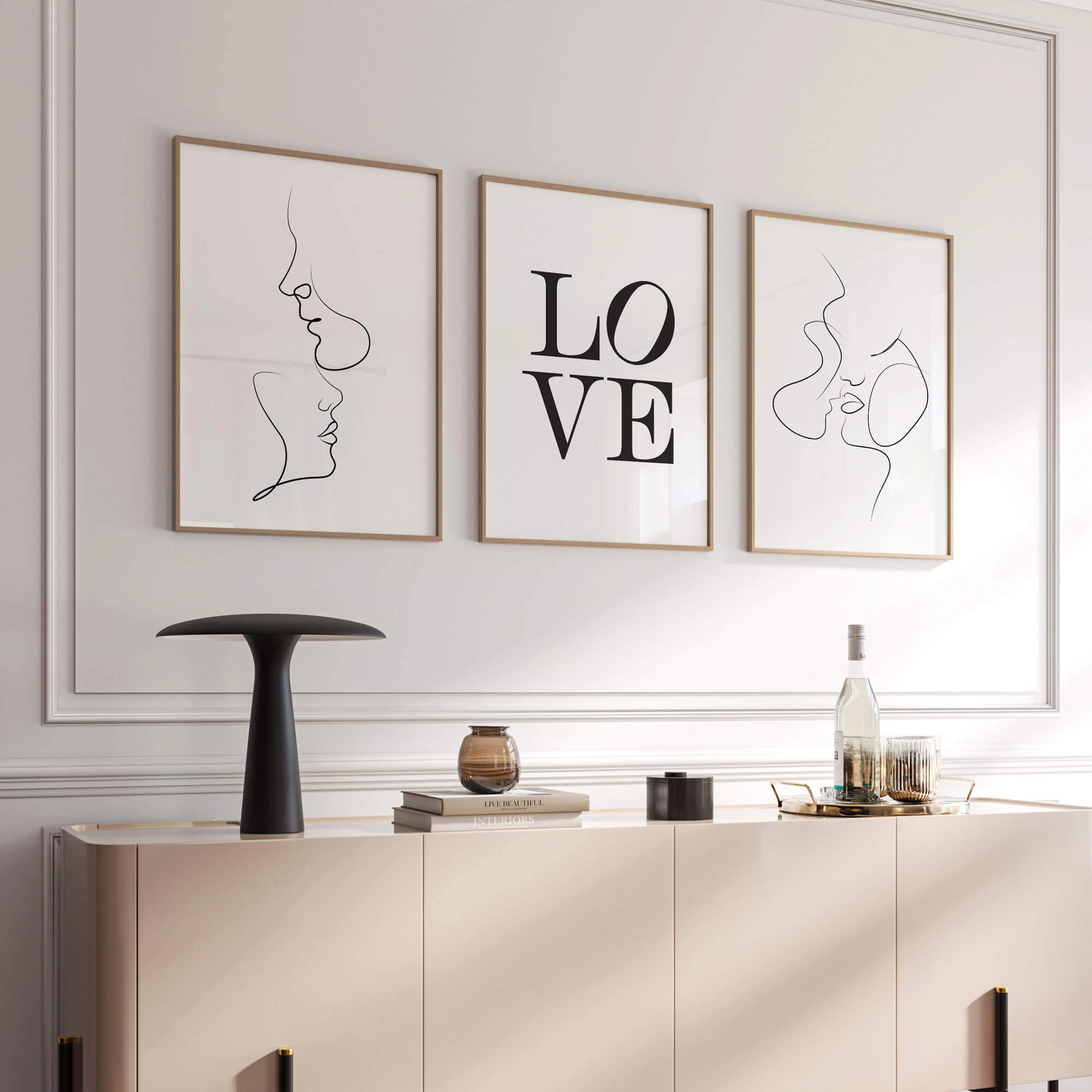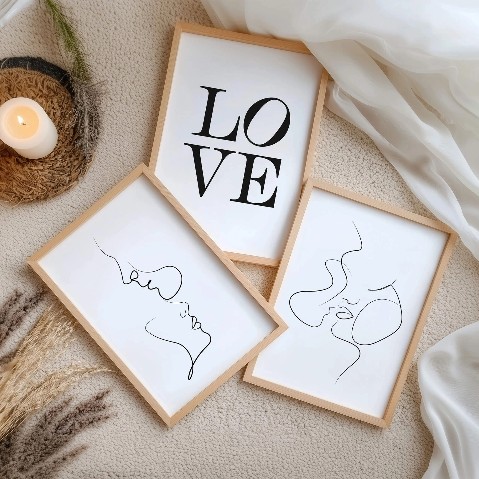 - Zestaw plakatów „Subtelna miłość” to opowieść o bliskości zamknięta w minimalistycznej formie. Line art twarzy i typograficzny akcent „LOVE” tworzą spójną, elegancką dekorację ścienną, idealną do wnętrz zarówno w stylu skandynawskim i nowoczesnym.