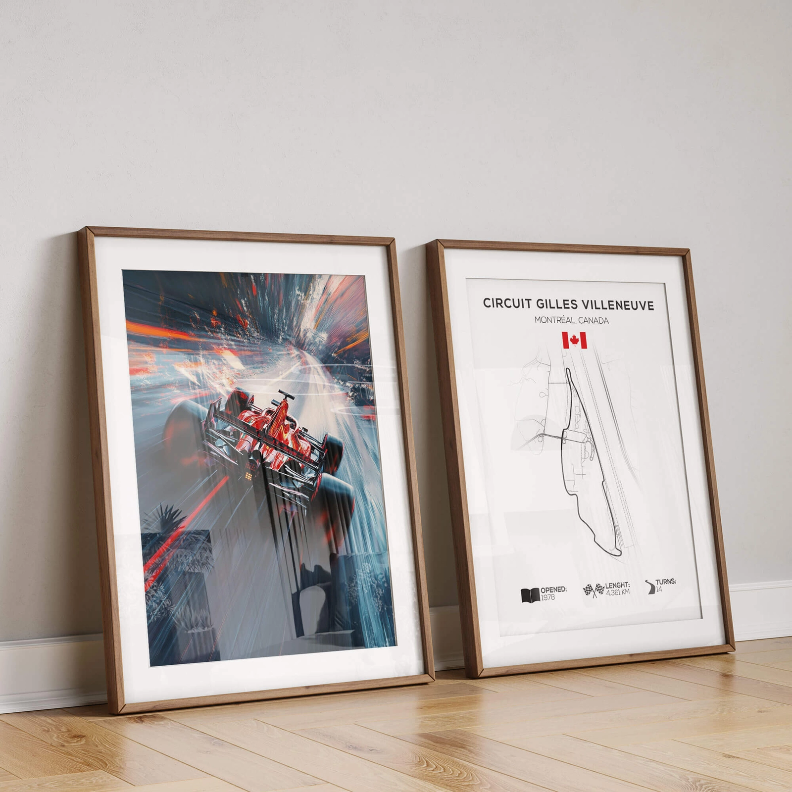 - Zestaw plakatów "Szybkość i pasja" zainspirowany został Formułą 1. Przedstawia dynamiczną, abstrakcyjną grafikę bolidu i personalizowaną mapę ulubionego toru. Idealny dla fanów wyścigów, pasjonatów prędkości i motorsportowego stylu.