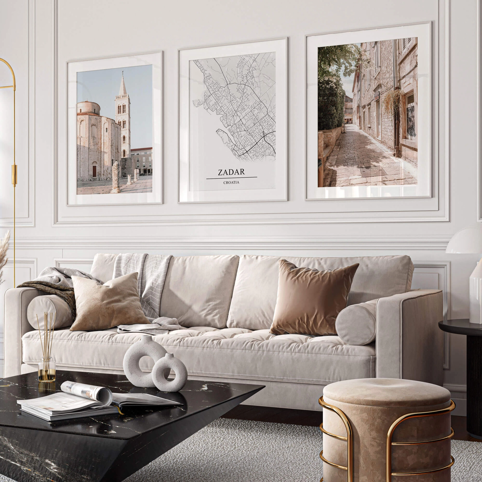 - Przepiękny zestaw plakatów, który łączy ze sobą sztukę, historię i nowoczesność tworząc doskonały element dekoracyjny. Dwa plakaty ukazują niesamowity klimat Zadaru. Cały zestaw uzupełnia nowoczesny plakat z mapą tego malowniczego miasta.