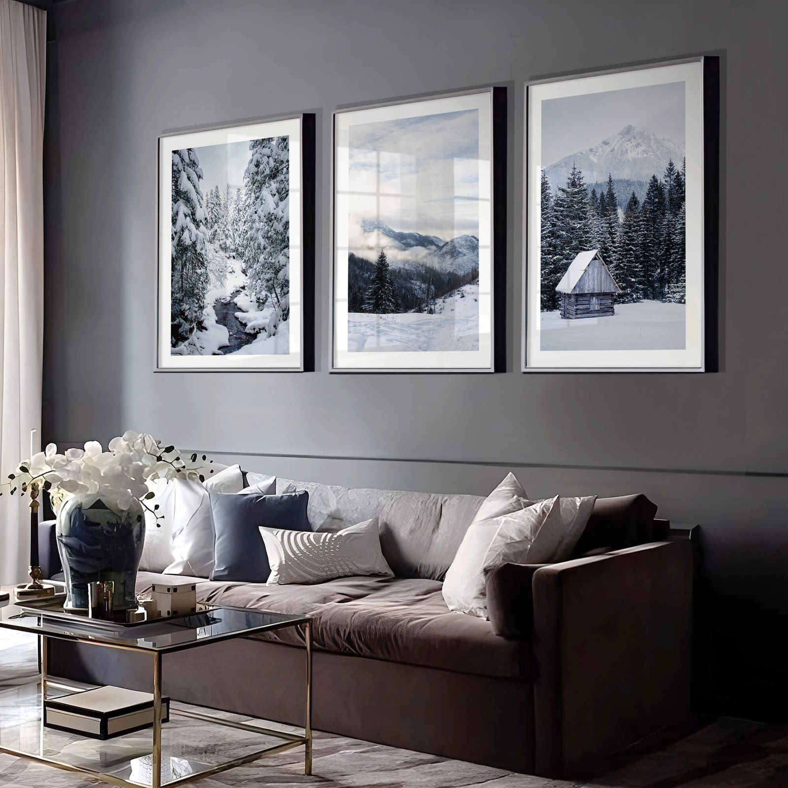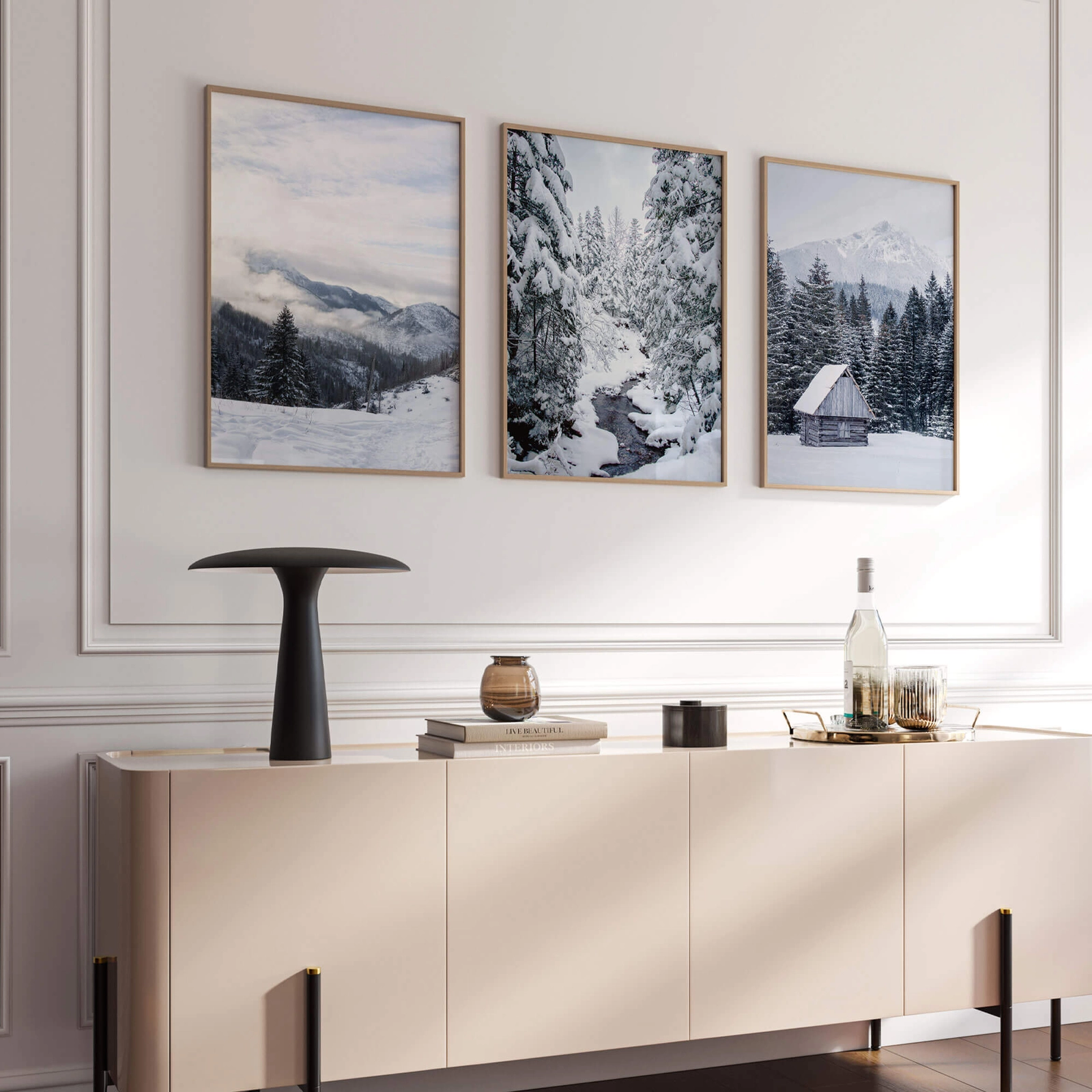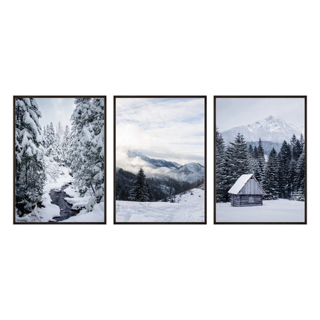 - Przepiękny zestaw trzech plakatów krajobrazowych z motywem zimy i gór. Zestaw zdecydowanie wniesie do Twojego domu odrobinę magii i świątecznego klimatu, oraz będzie pięknym elementem dekoracyjnym salonu, sypialni czy jadalni.